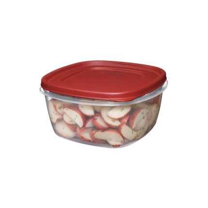 Easy Find Lids . Tapa Roja y Cuerpo Transparente G7J72 – Contenedor especialmente desarrollado por Rubbermaid – Sistema Guardafacil evita extraviar las tapas – Las tapas se ajustan a las bases y a otras tapas para un fácil almacenamiento. – Base Super-Clarified permite ver fácilmente los contenidos – Forma cuadrada para una óptima utilización del espacio – Paredes de contenedores gruesas y duraderas para uso diario – Apto para microondas, congelador y lavavajillas. – Capacidad: 3.3L (equivalente a 14 tazas) – Las bases y las tapas son BPA FREE – Cuenta con todas las regulaciones de FDA – Hecho en USA