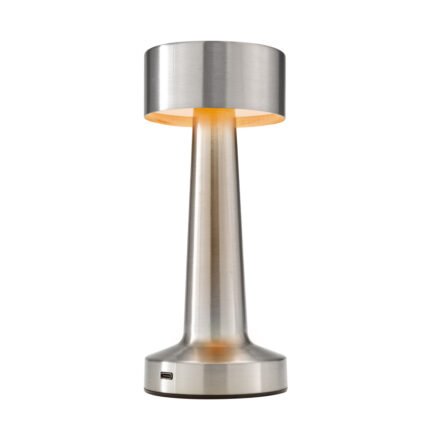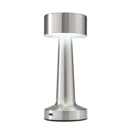 Tres modos de luz para iluminar tu espacio con estilo y versatilidad.Lámpara. Luz led. Botón táctil de encendido/apagado que regula la intensidad y cambia tres modos de luz (cálida, blanca y blanca cálida). Pintura con acabado mate (color negro) y con acabado brillante (plata y cobre). Batería de litio recargable. Conexión USB-C. Incluye cable de carga color negro.Medidas: Ø 9,5 x 21,5 cm.