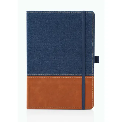 Cuaderno tapa dura forrado en tela Denim y cuero ecológico.