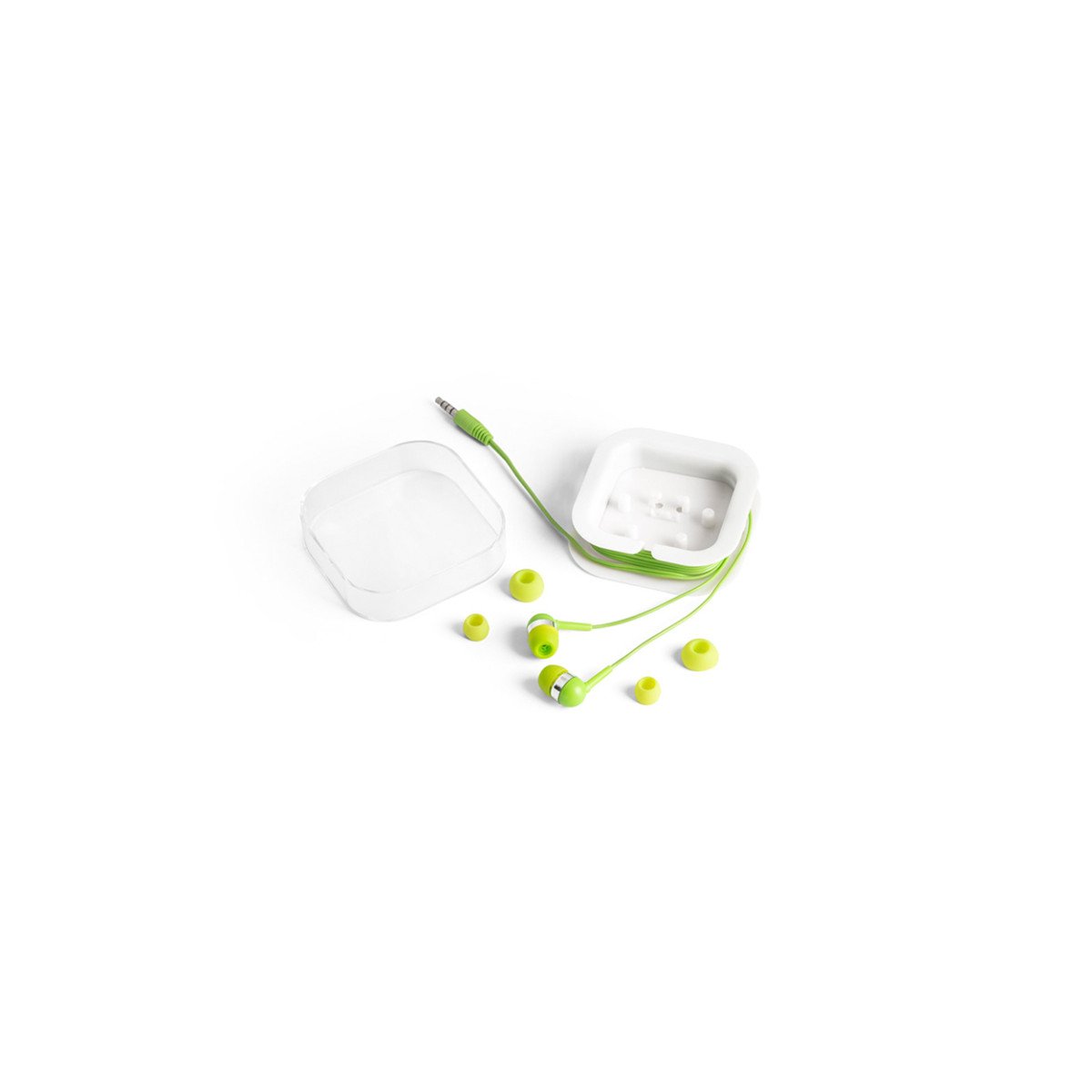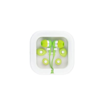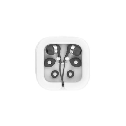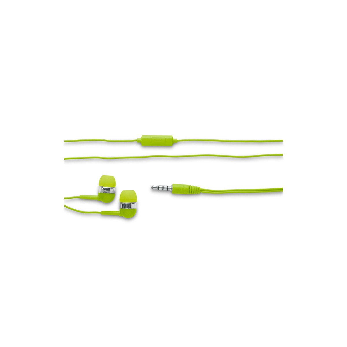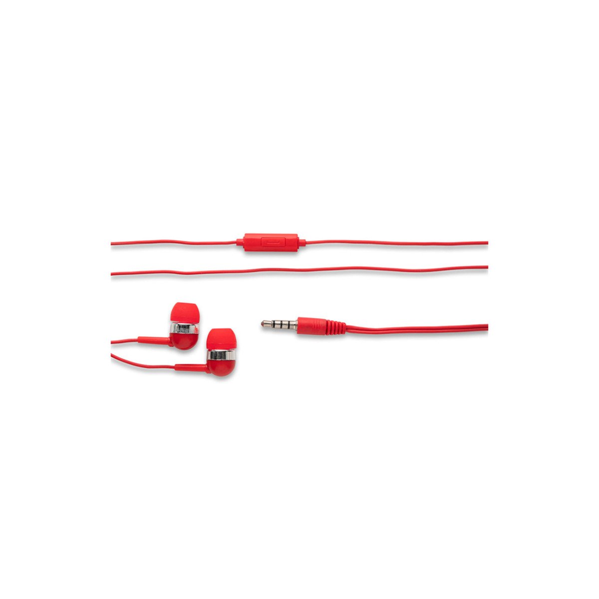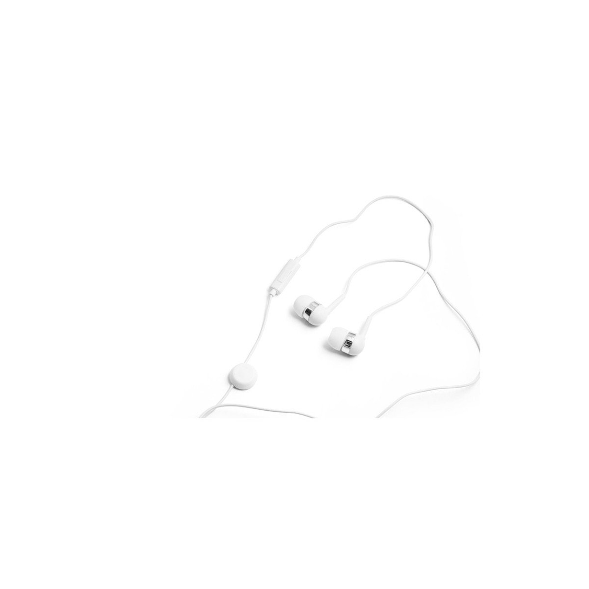Auriculares de 120 cm con micrófono incorporado. Cuenta con conexión estéreo de 3,5mm. Incluye 2 pares adicionales de adaptadores de silicona para los oídos (dos tamaños diferentes). Se suministra en caja de PS y ABS. Medidas: 7 x 7 x 1,8 cm
