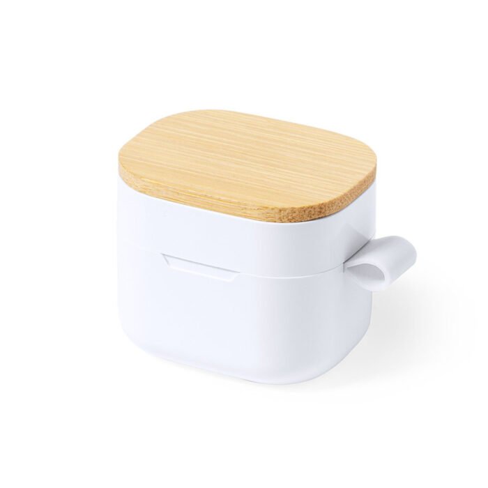 Auriculares inalámbricos fabricados en RABS, bambú y silicona. Cada auricular cuenta con un botón touch que permite contestar y finalizar llamadas, reproducir y pausar música, cambiar a la siguiente o anterior canción. Tienen tecnología Bluetooth 5.3, una duración de batería de aproximadamente 4 horas y un estuche de carga de 300 mAh, el cual se carga a través de un cable usb c. Los auriculares cuentan con almohadillas de diferentes tamaños.