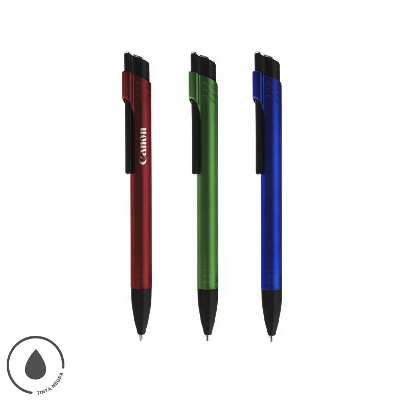 Bolígrafo plástico retráctil con cuerpo sólido y tinta negra.