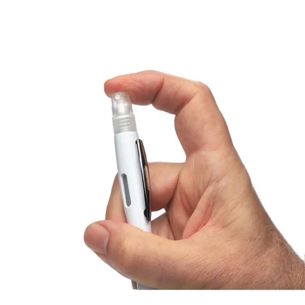 Clip metálico y punta gris metalizado, con contenedor spray.