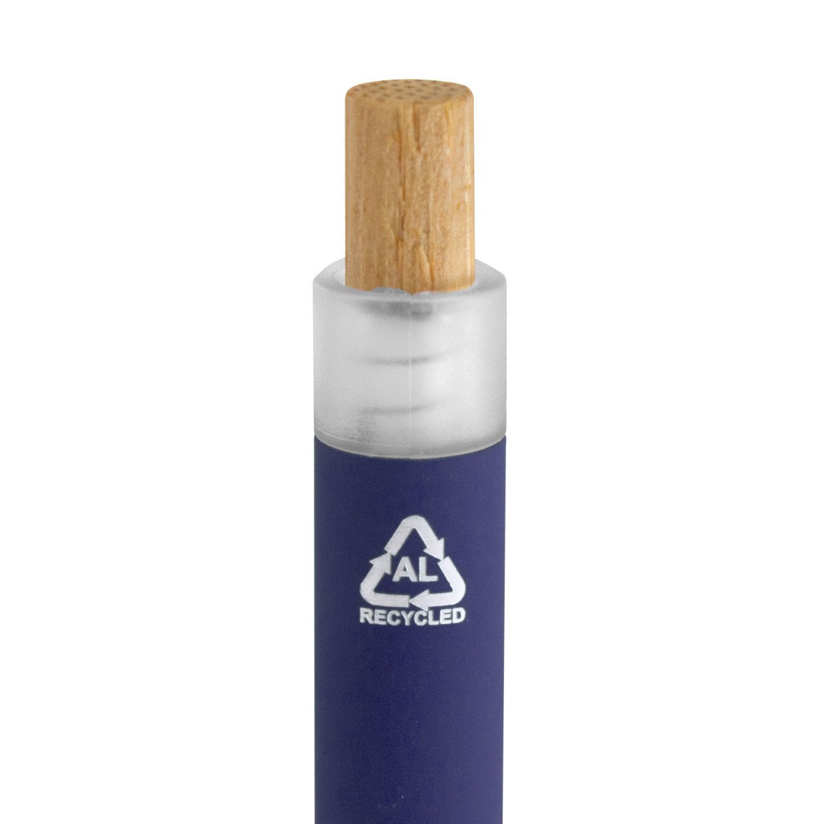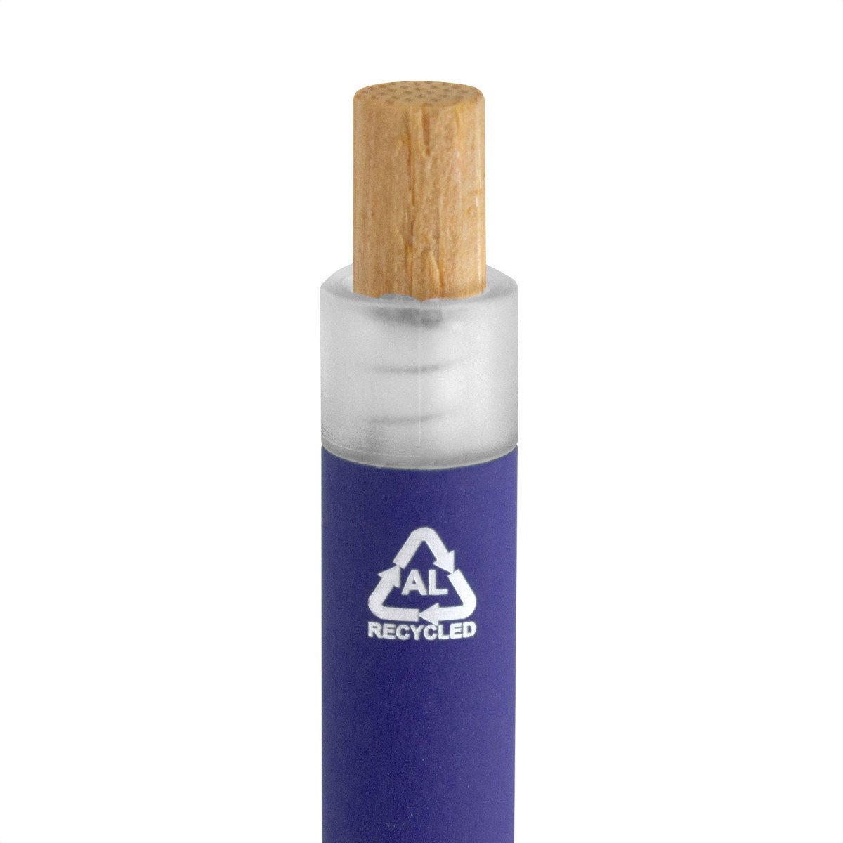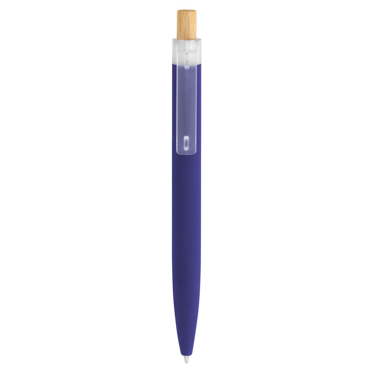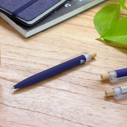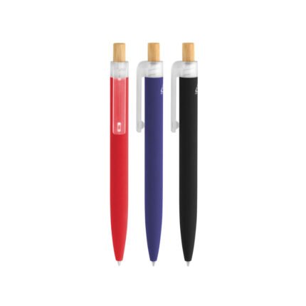 Fusiona lo moderno, elegante y ecológico.Bolígrafo retráctil. Cuerpo de aluminio en diferentes colores, acabado mate engomado, muy suave al tacto. Botón pulsador de bambú. Clip plástico transparente con terminación frosty. Medidas: 1,6 x 13,4 cm.