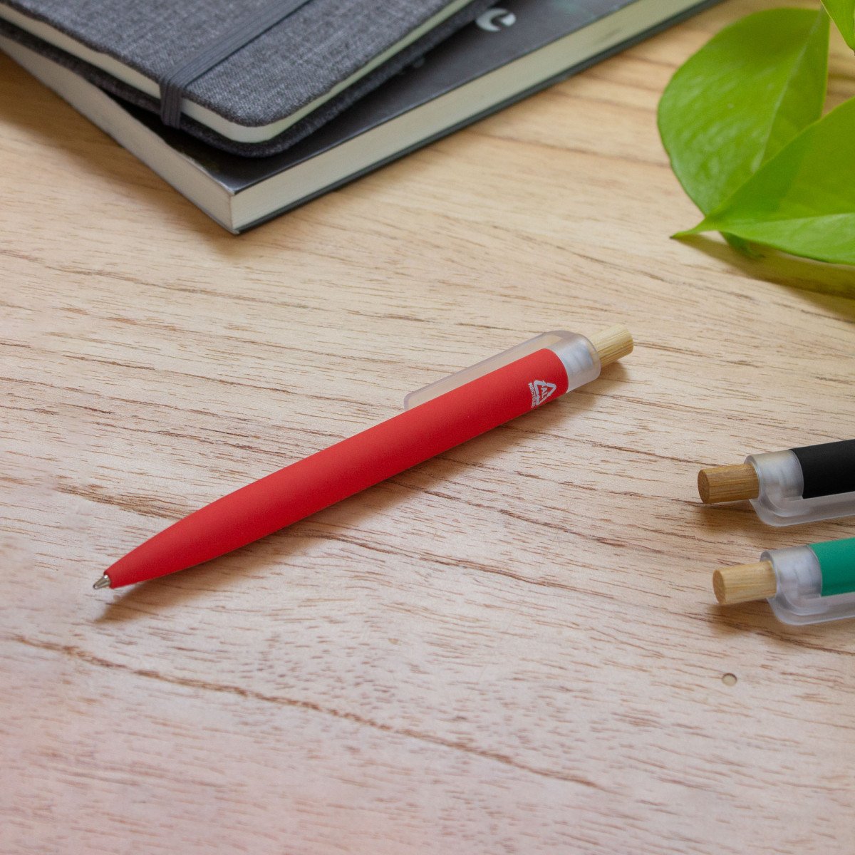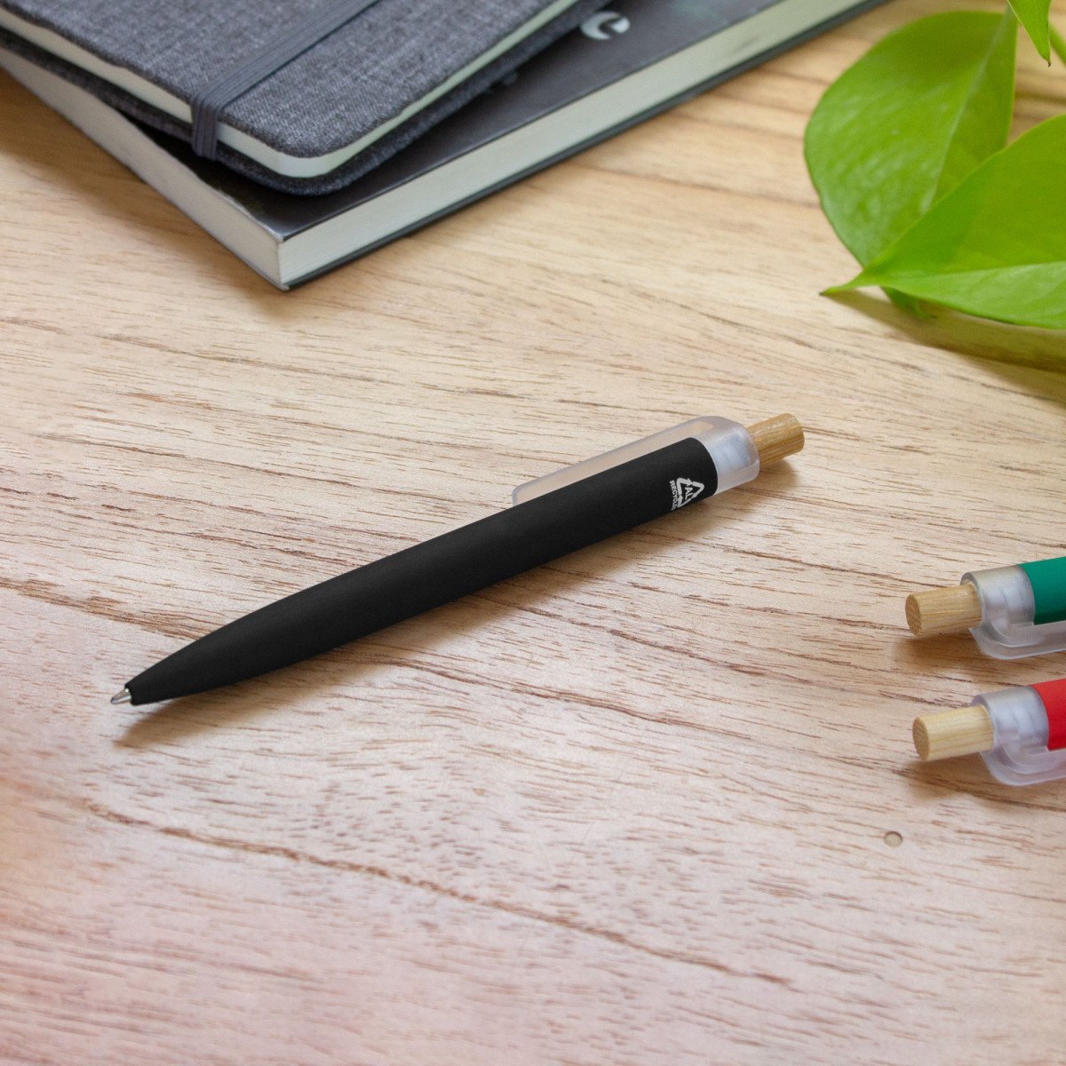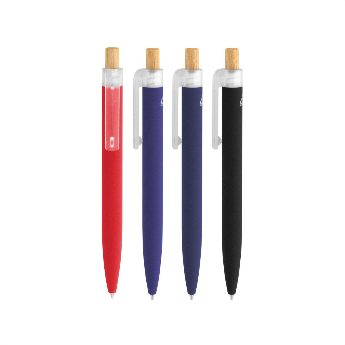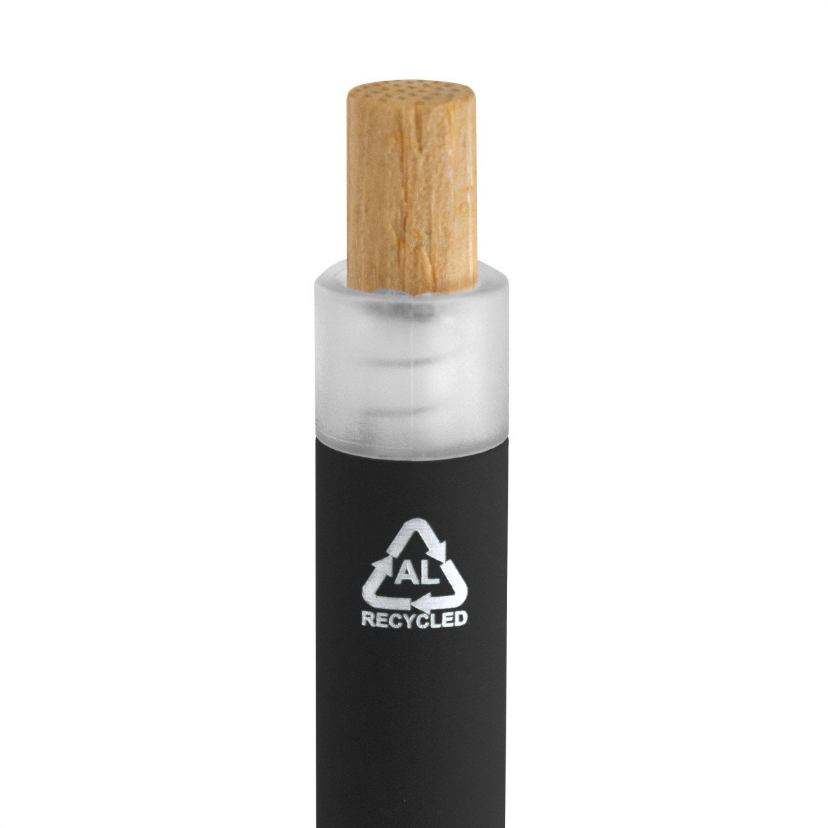 Fusiona lo moderno, elegante y ecológico.Bolígrafo retráctil. Cuerpo de aluminio en diferentes colores, acabado mate engomado, muy suave al tacto. Botón pulsador de bambú. Clip plástico transparente con terminación frosty. Medidas: 1,6 x 13,4 cm.