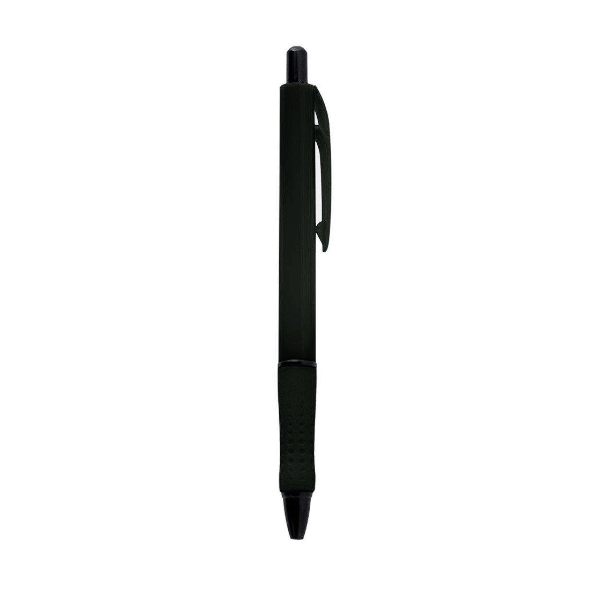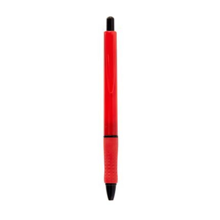 Bolígrafo con cuerpo plástico de color. Grip de goma combinado con el cuerpo. Pulsador negro. Retráctil. Tinta negra. Tahg