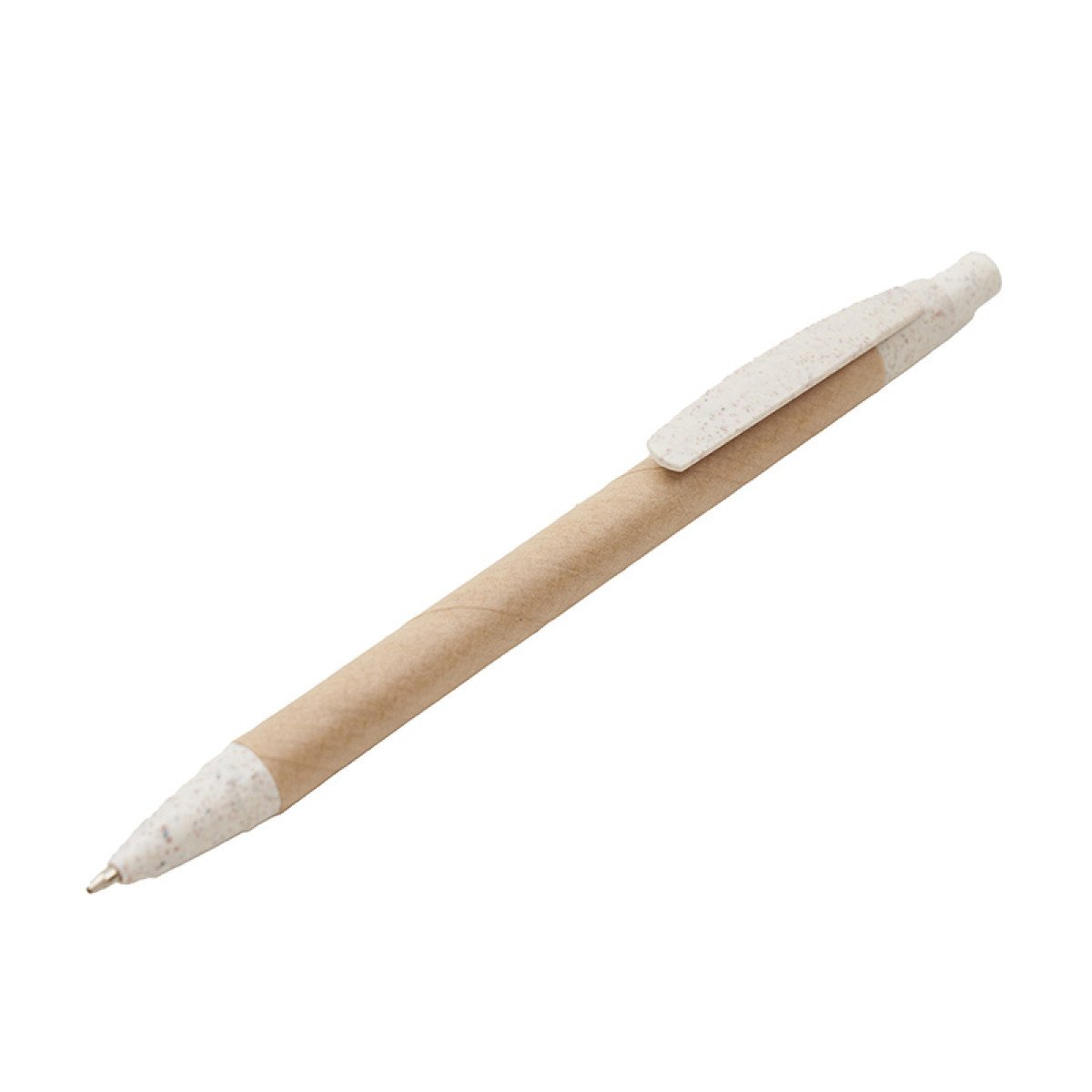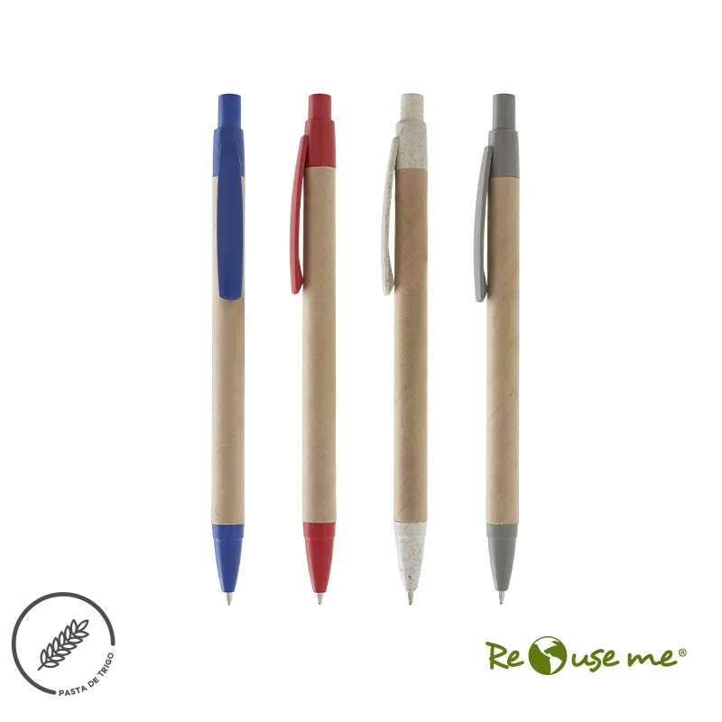 Bolígrafo realizado en celulosa y Wheat Straw, pasta de tallo de trigo, un material sustentable que reduce el consumo de plásticos vírgenes. Cuenta con clip de apertura retráctil. Tinta Azul.