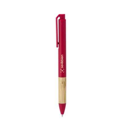Diseño simple, estilo sostenible.Bolígrafo retráctil. Cuerpo, puntera y pulsador de plástico reciclable. Agarre de bambú. Pintura acabado mate.Medidas: 1,1 x 14,3 cm