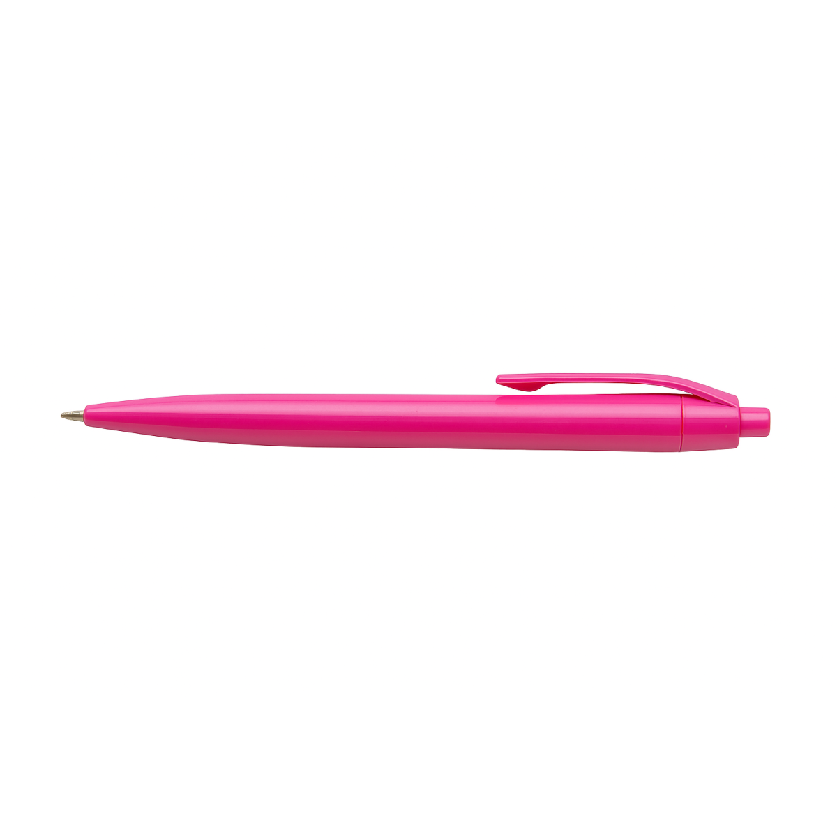 Retráctil plástico. Cuerpo y clip del mismo color. Tinta azul. Punta redonda con grosor de 1.0MM. Medidas: ø1×13,9 cm