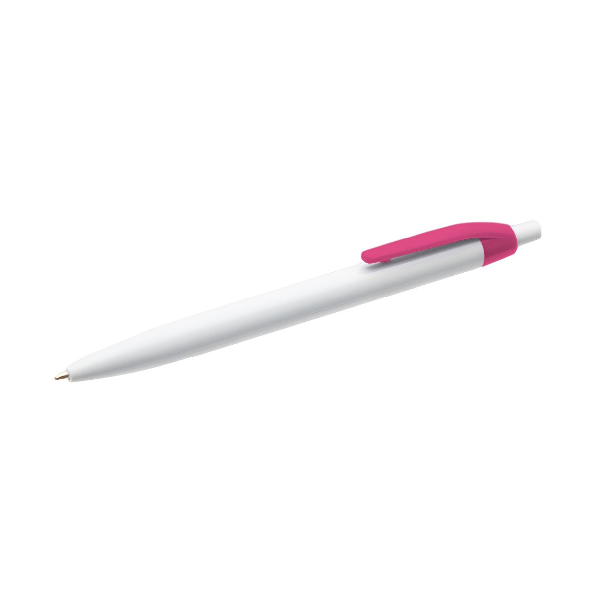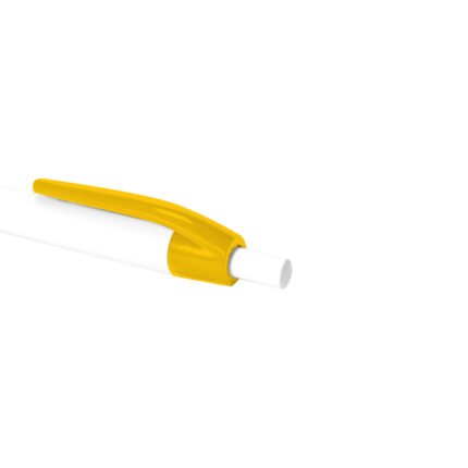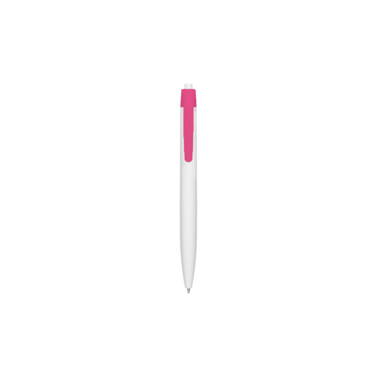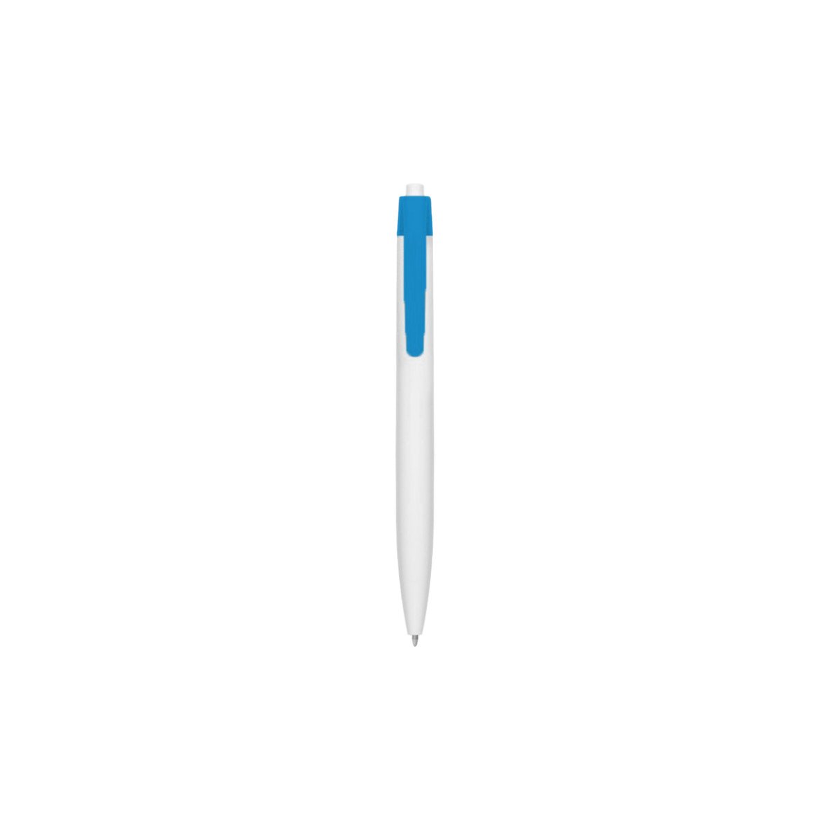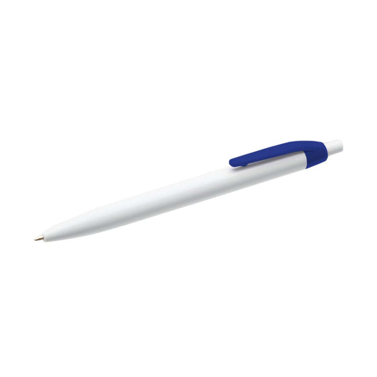 Bolígrafo retráctil de diseño práctico y liviano, ideal para uso cotidiano en oficinas, eventos y acciones promocionales. Presenta un cuerpo blanco combinado con clip en color, logrando una estética limpia y moderna. Escribe con tinta azul fluida y pareja, gracias a su punta redonda de 1.0 mm que garantiza trazos suaves en cada uso. Un modelo versátil, económico y funcional para personalizar con logos y mensajes de marca.