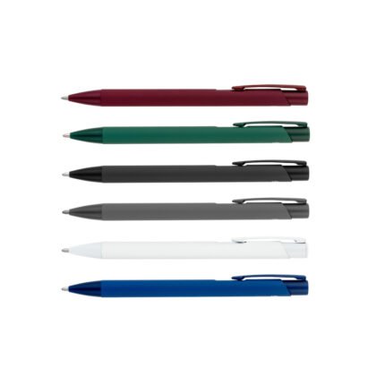 Retráctil, con cuerpo de aluminio 100% reciclado (rAL) y acabado soft-touch tipo engomado. Elegante, sustentable y cómodo para escribir. Tinta: Azul*El producto cuenta con ícono rAL en dorso.