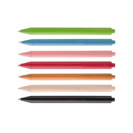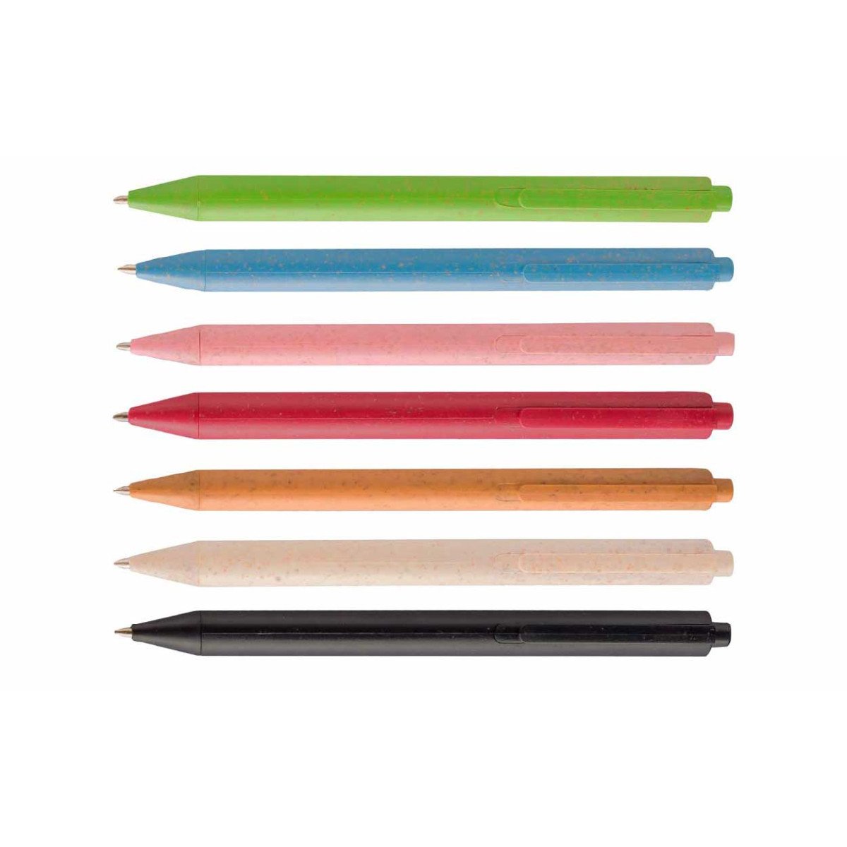 Bolígrafo retráctil ecológico fabricado en fibra de paja de trigo y PP. Detalles granulados en el color . Tinta negra, punta redonda, grosor 1.0MM