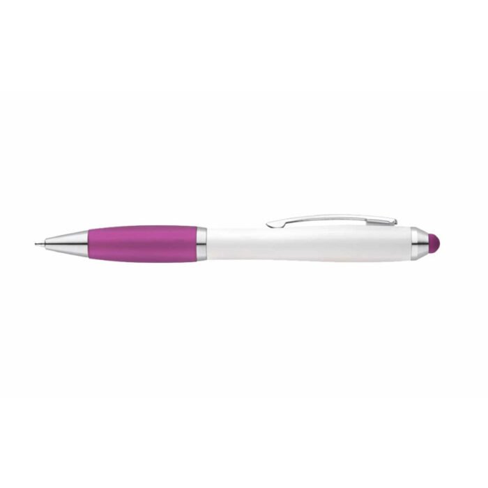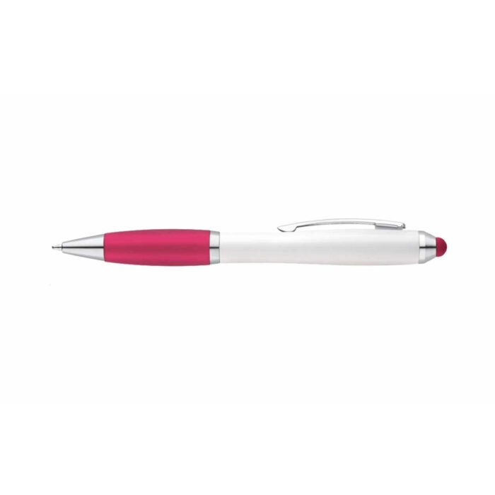 Bolígrafo Touch – Cuerpo blanco, grip y touch de color y clip metálico