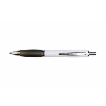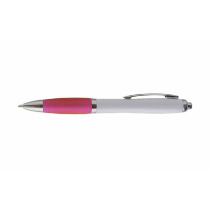 Bolígrafo plástico retráctil con grip de silicona en variedad de colores y clip metálico