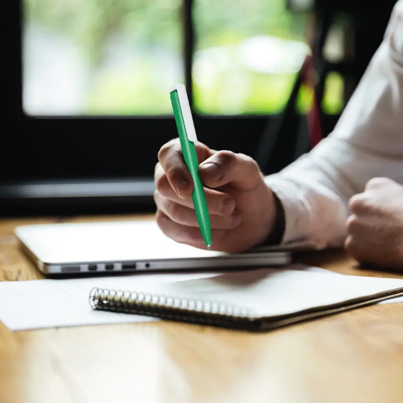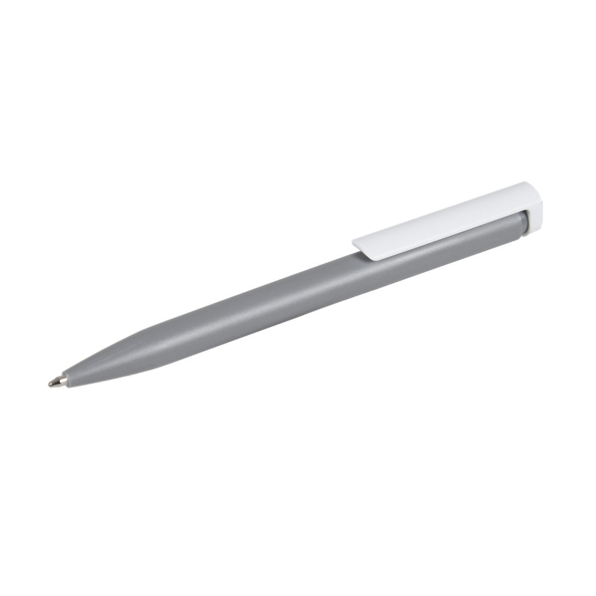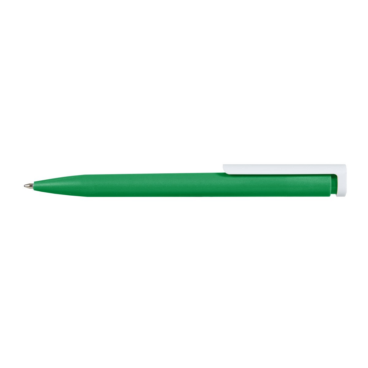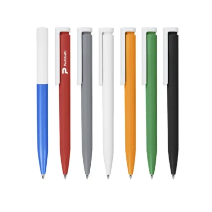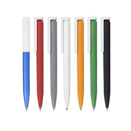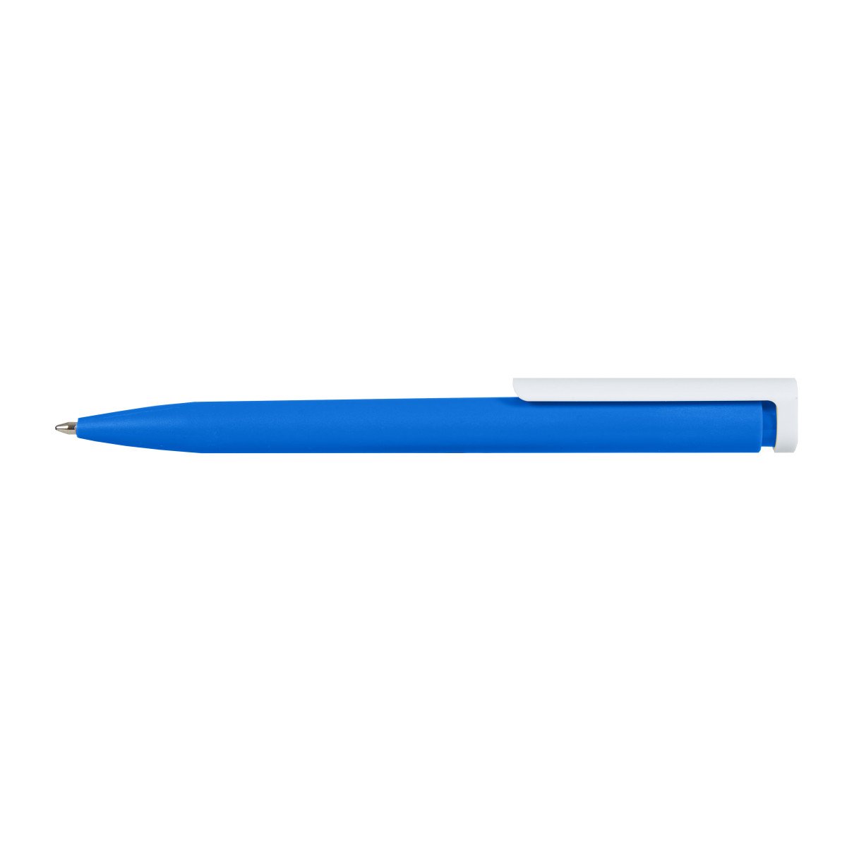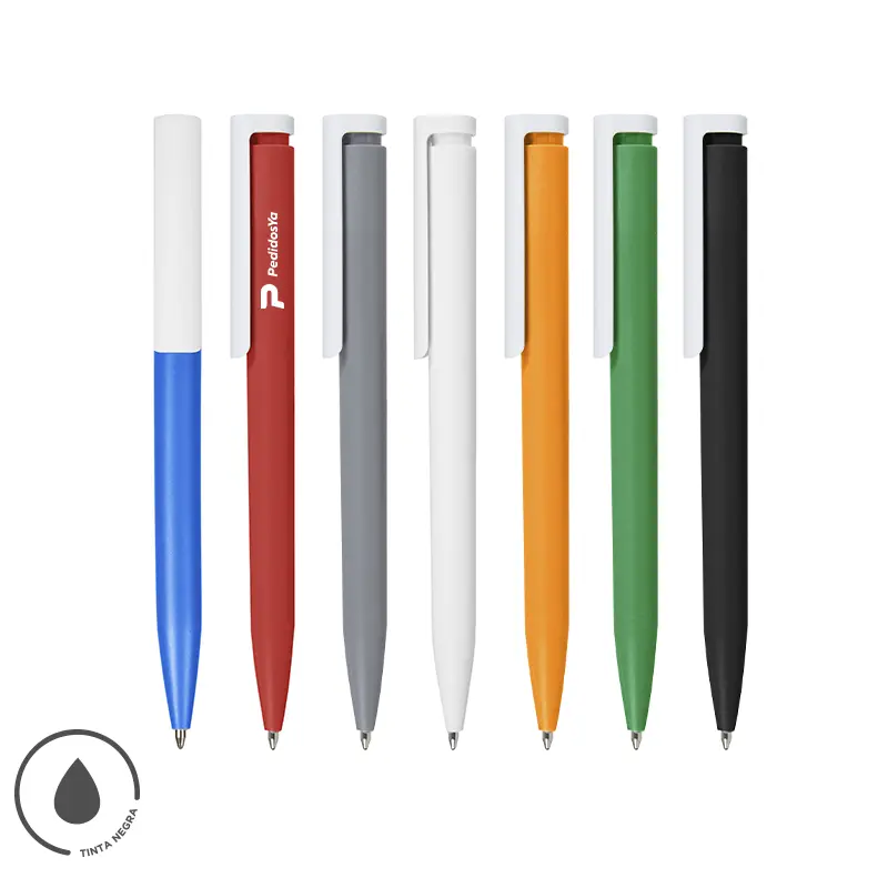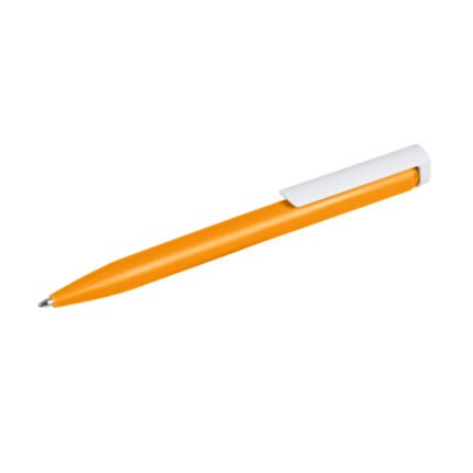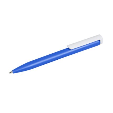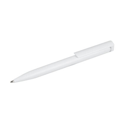 Bolígrafo plástico de cuerpo de color sólido y clip en color blanco. Apertura con pulsador. Tinta Azul 1000 m de longitud de escritura. Zecat