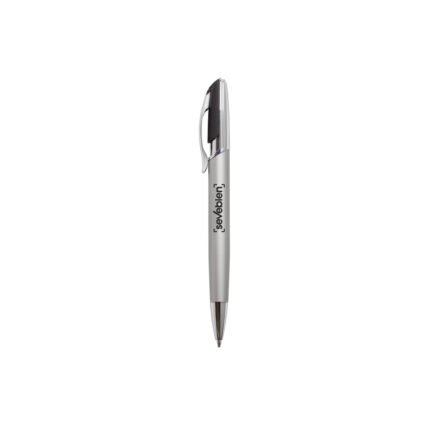 Aluminio. Cuerpo en aluminio opaco. Pulsador y puntera plásticos color plata brillante. Clip metálico.Tinta negra. Electroplateado.