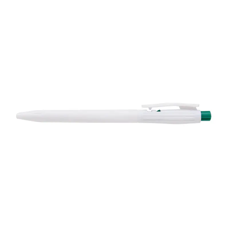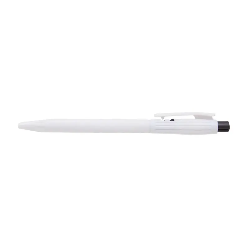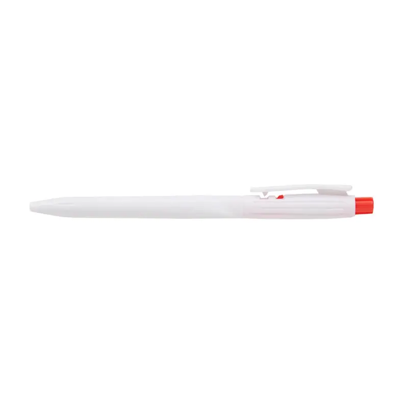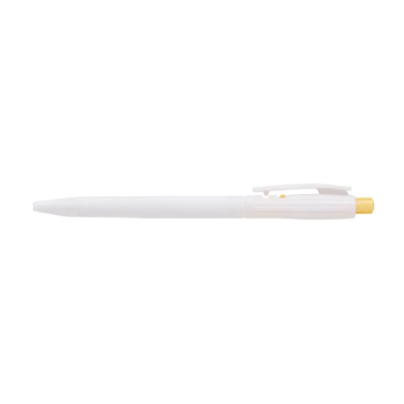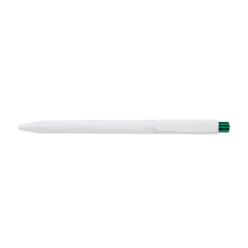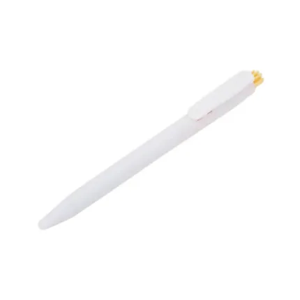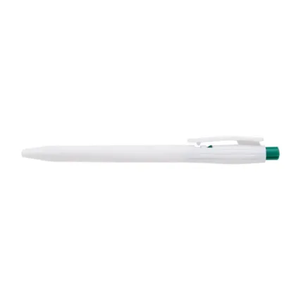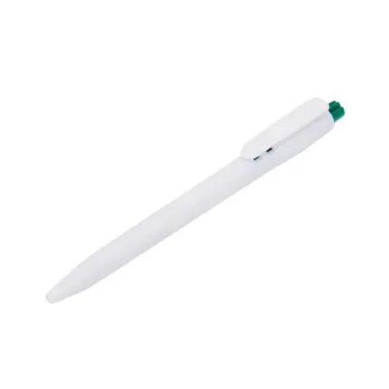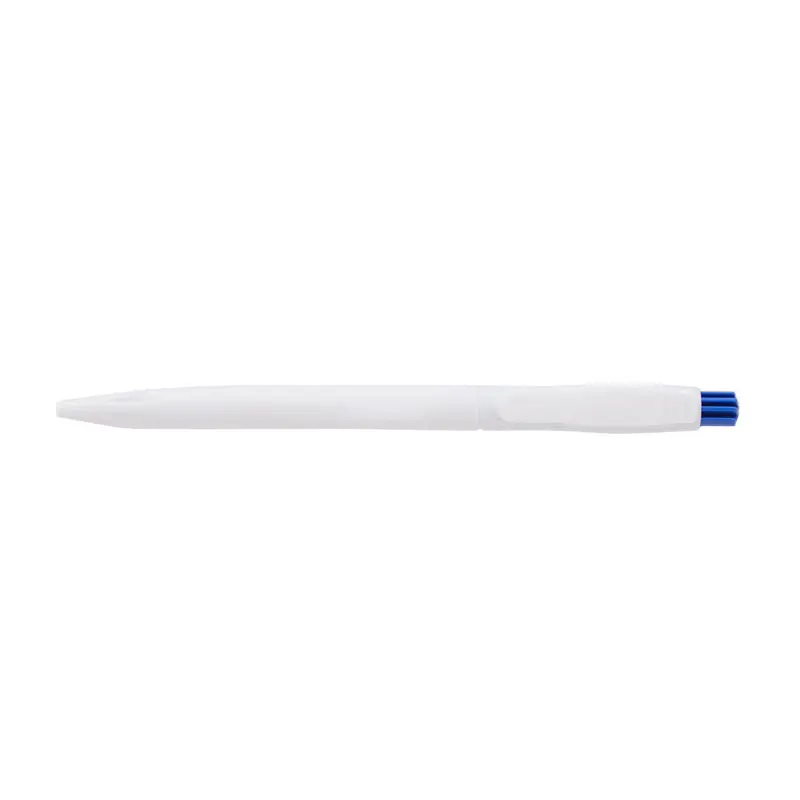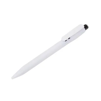 Bolígrafo confeccionado en ABS, de cuerpo de color blanco y clip en color. Apertura con pulsador. Tinta Azul. Tahg