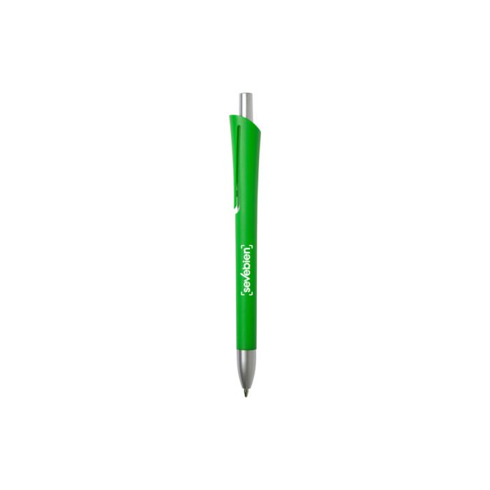 Plástico. Bolígrafo con cuerpo plástico de color, botón pulsador y puntera color plata. Tinta negra.