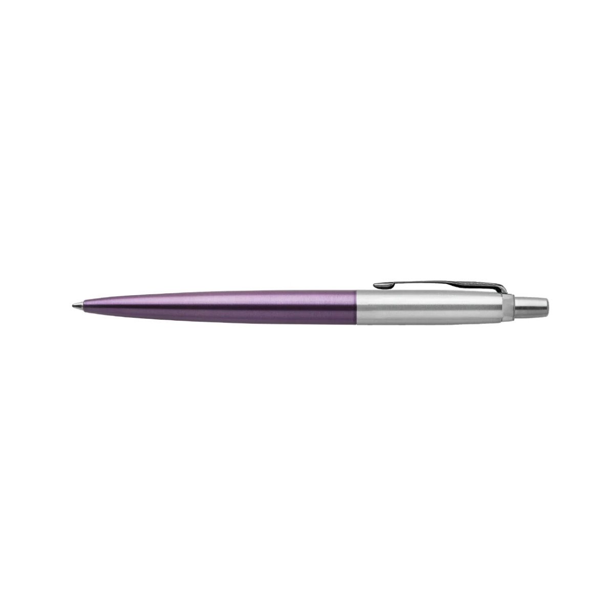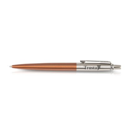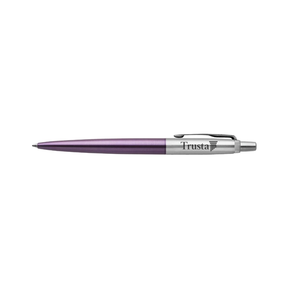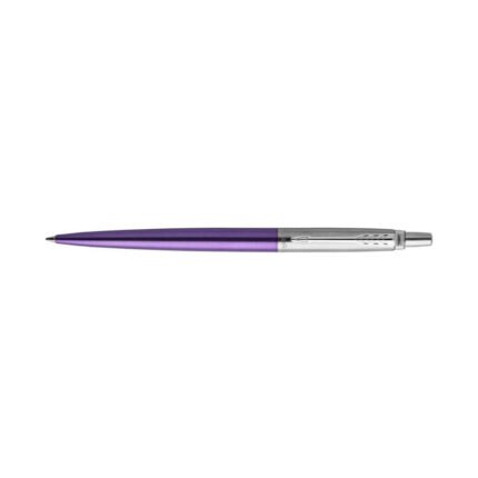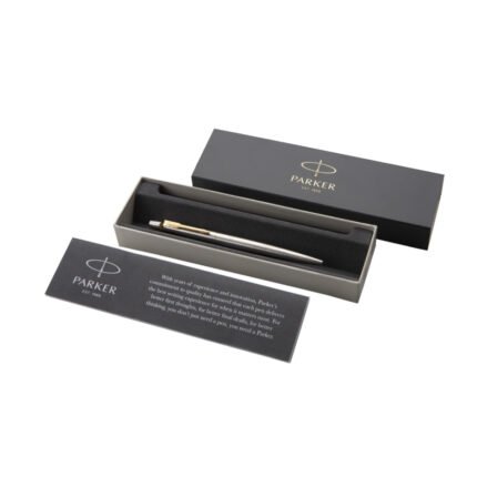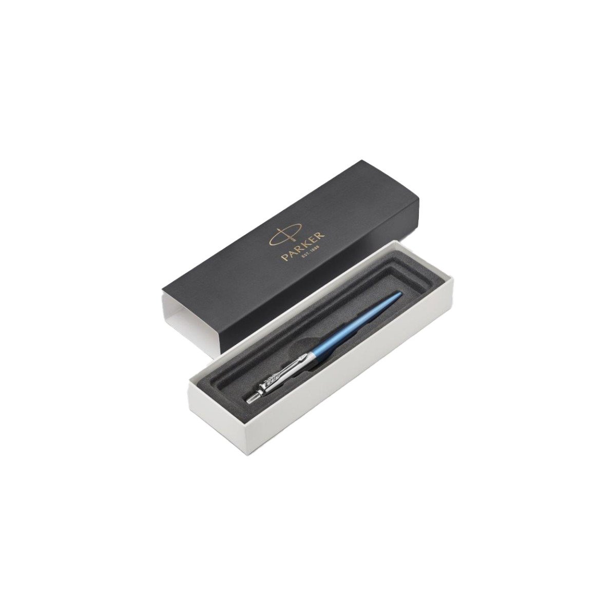 Bolígrafo de acero inoxidable cromado con punta media. Tinta azul. Acabado de impresión láser en tono gris oscuro/negro.