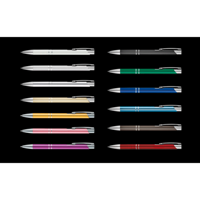 Bolígrafo fabricado en aluminio, con clip y retráctil metalizados. Disponible en una amplia gama de colores.