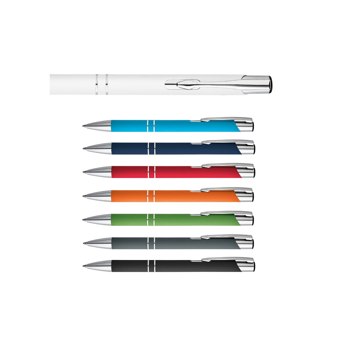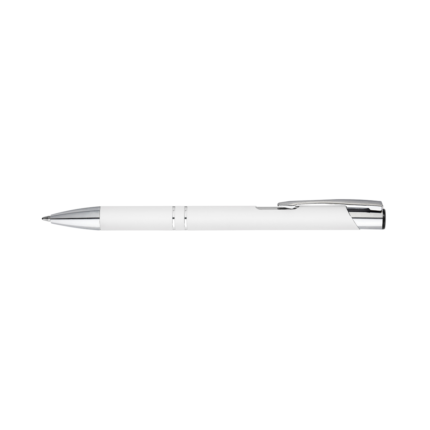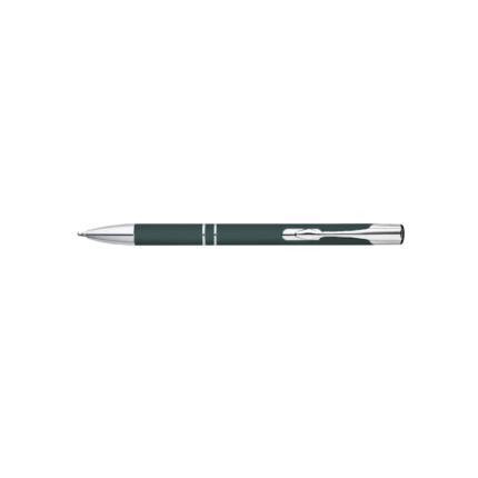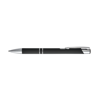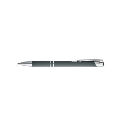 Bolígrafo retráctil con clip metálico. Material de aluminio con acabado en goma (rubber). Tinta de color negro. Medidas: ø 1 x 13,7 cm