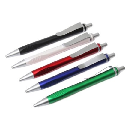 Cuerpo nacarado, punta y botón metalizados, clip de metal.