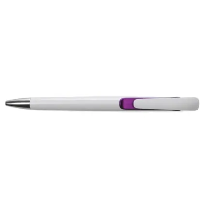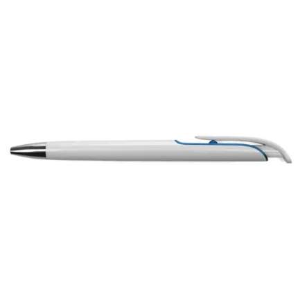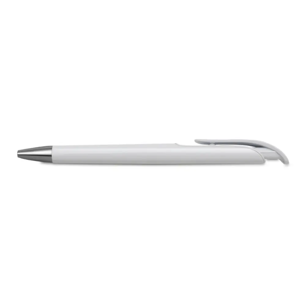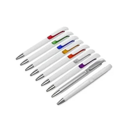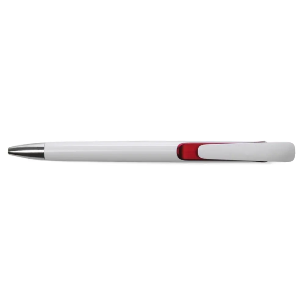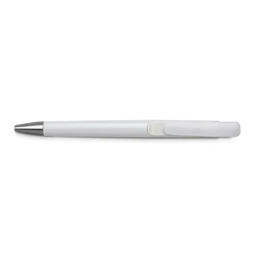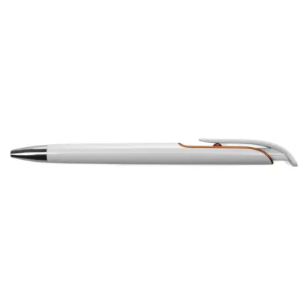 Cuerpo plástico blanco con detalles en color bajo el clip.