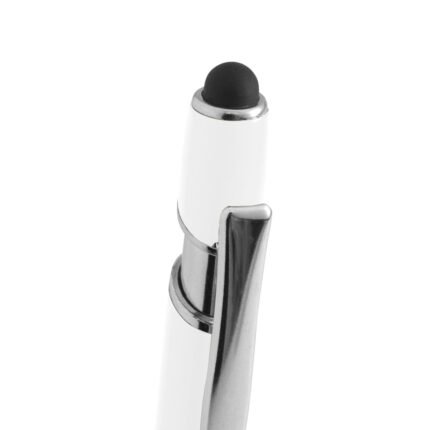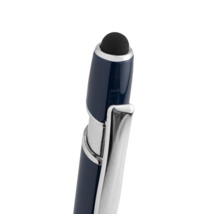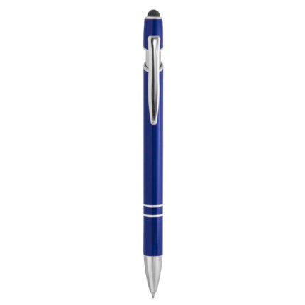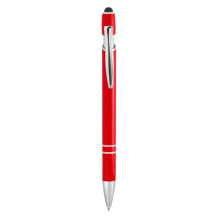 Metálico. Bolígrafo retráctil con pulsador touch. Cuerpo de aluminio de diferentes colores con acabado laca. Puntera, anillos, clip y detalles del pulsador en plateado brillante.