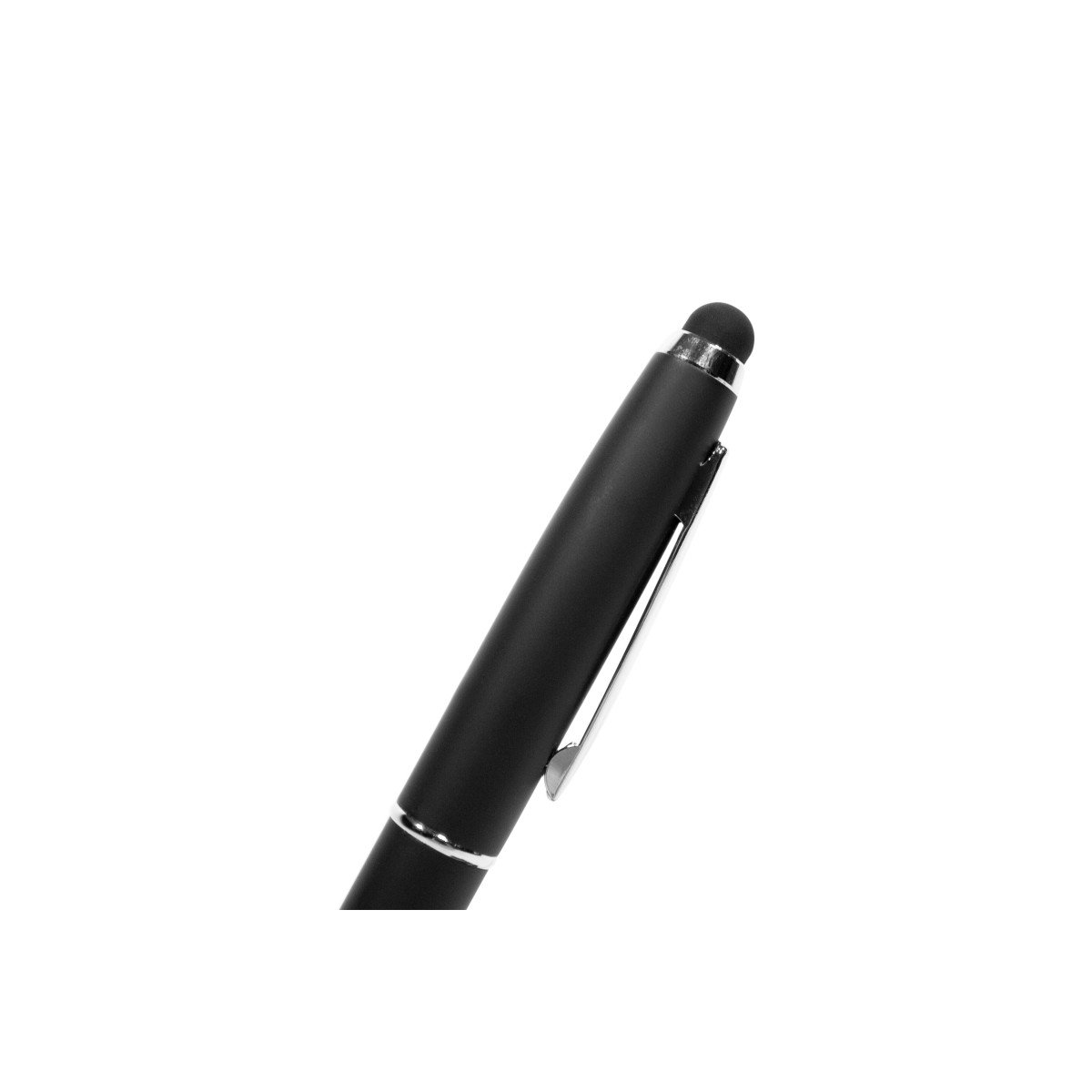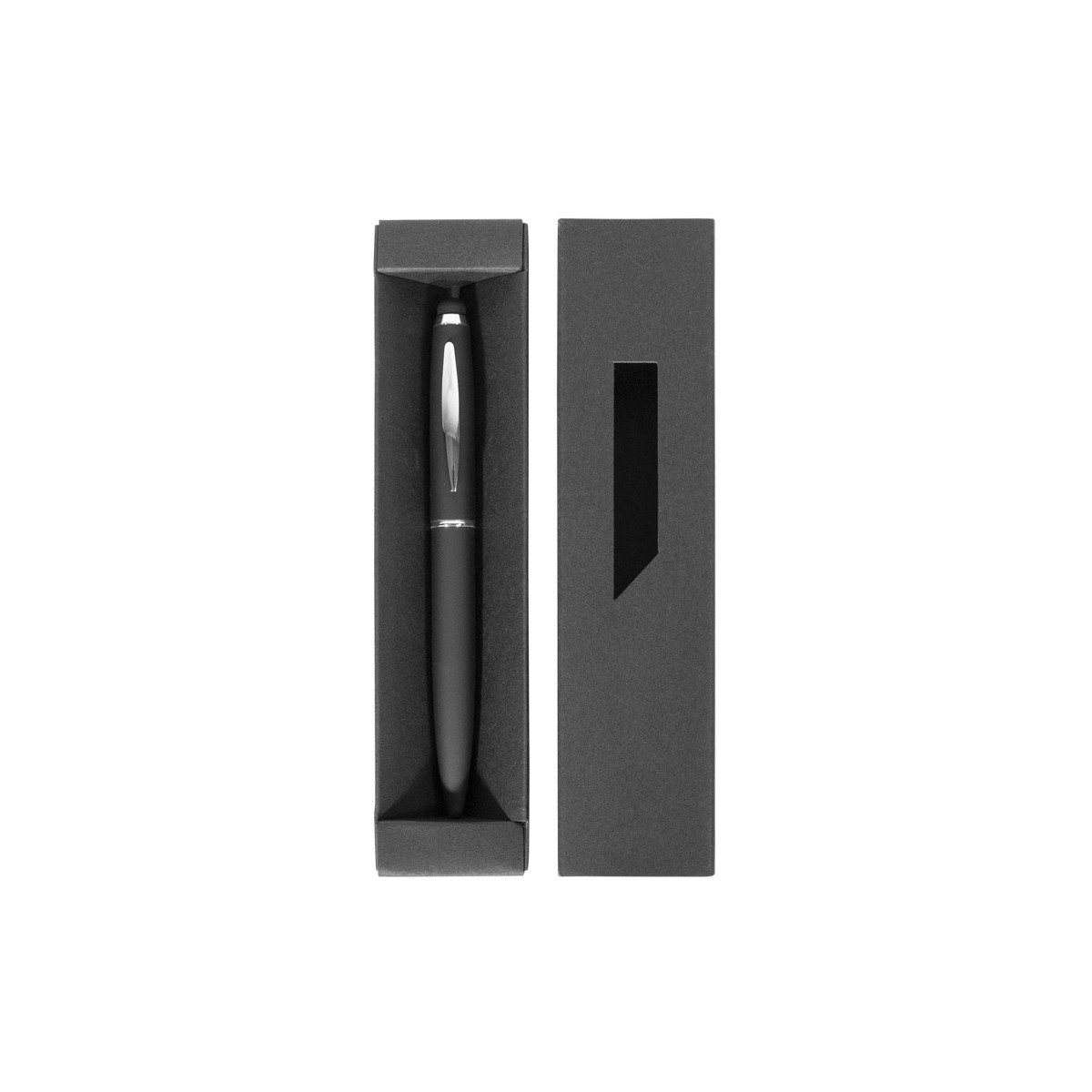 Metal. Cuerpo color negro engomado. Puntera touch y apertura giratoria. Cuenta con detalles color plata. Tinta gel negra. Decapa plata. Presentación en caja de regalo.