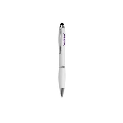 Ø 0,5 x 13,5 cm. Bolígrafo plástico giratorio con detalles metálicos. Clip metálico. Puntero para pantallas táctiles. Tinta negra.