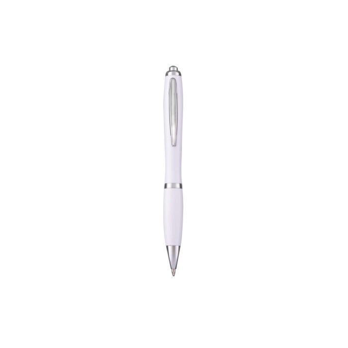 Plástico. Cuerpo de color. Pulsador y puntera plásticos. Clip metálico. Tinta negra.