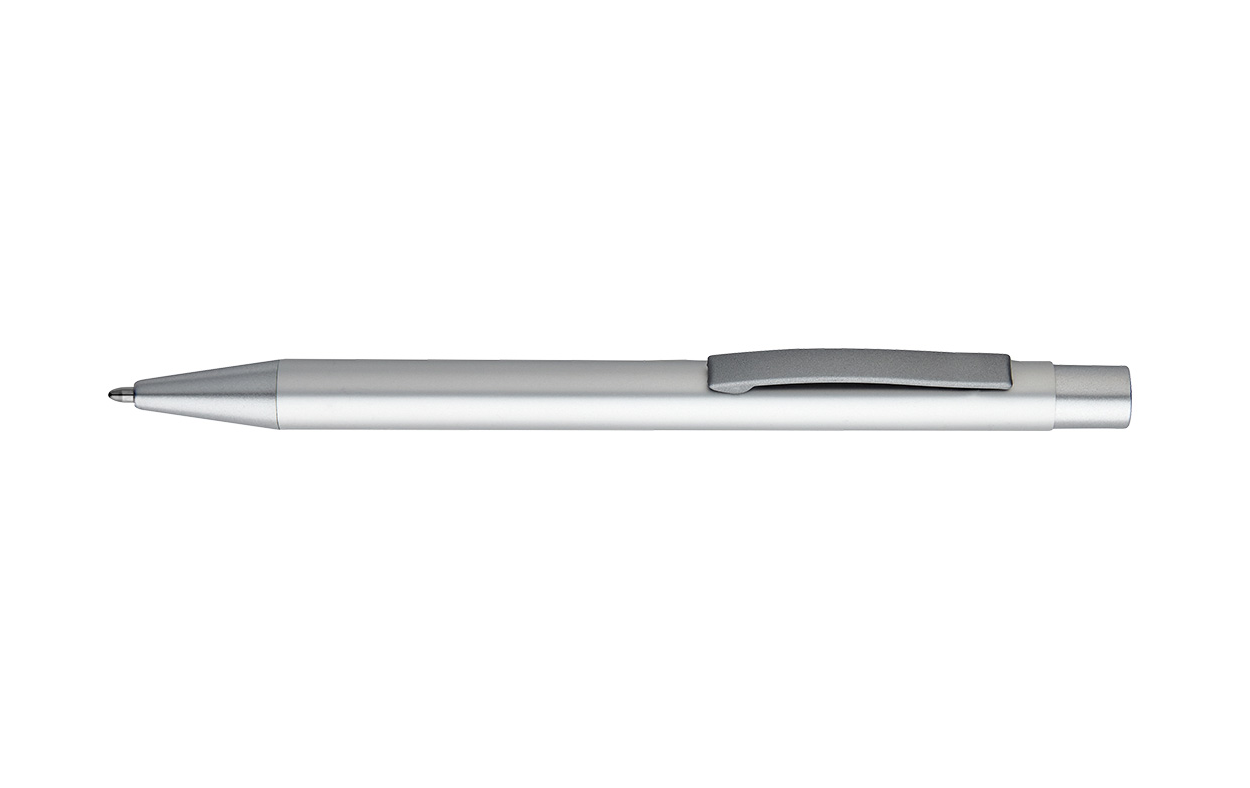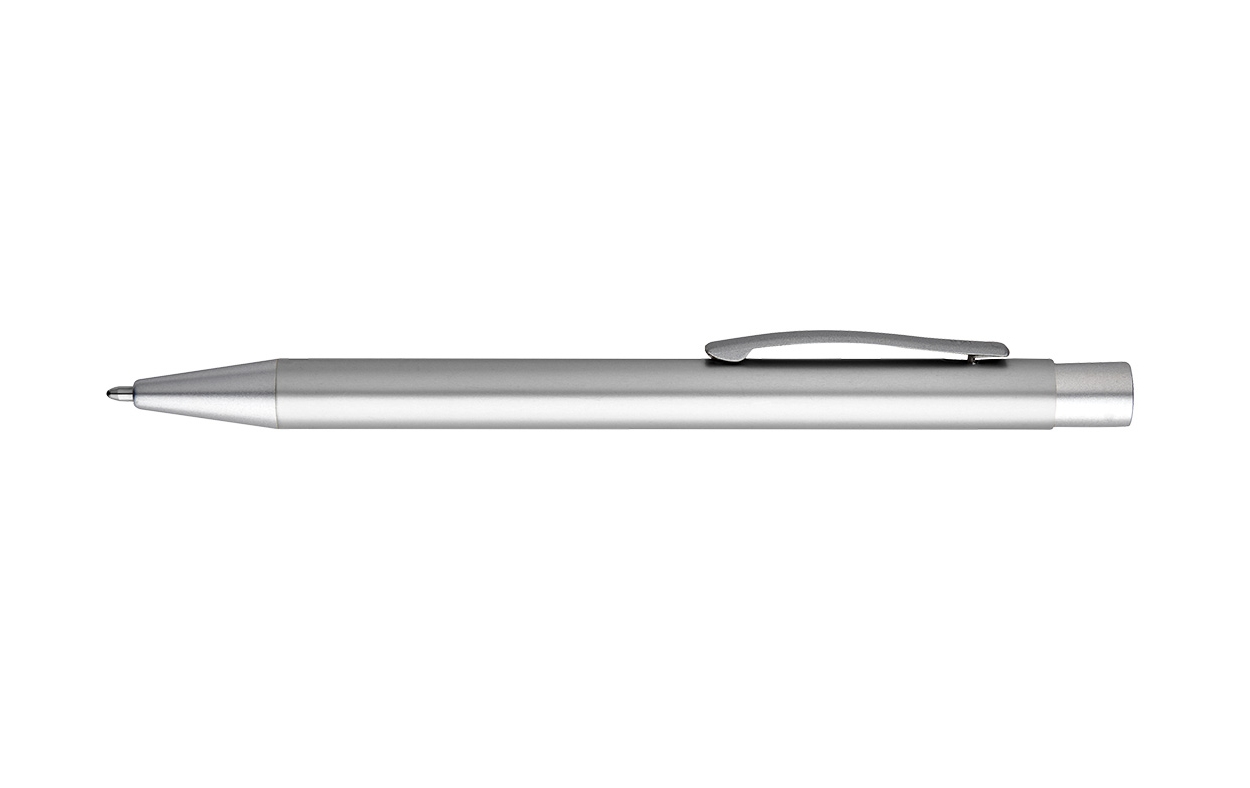 Bolígrafo retráctil, fabricado en aluminio. Cuenta con acabado mate.