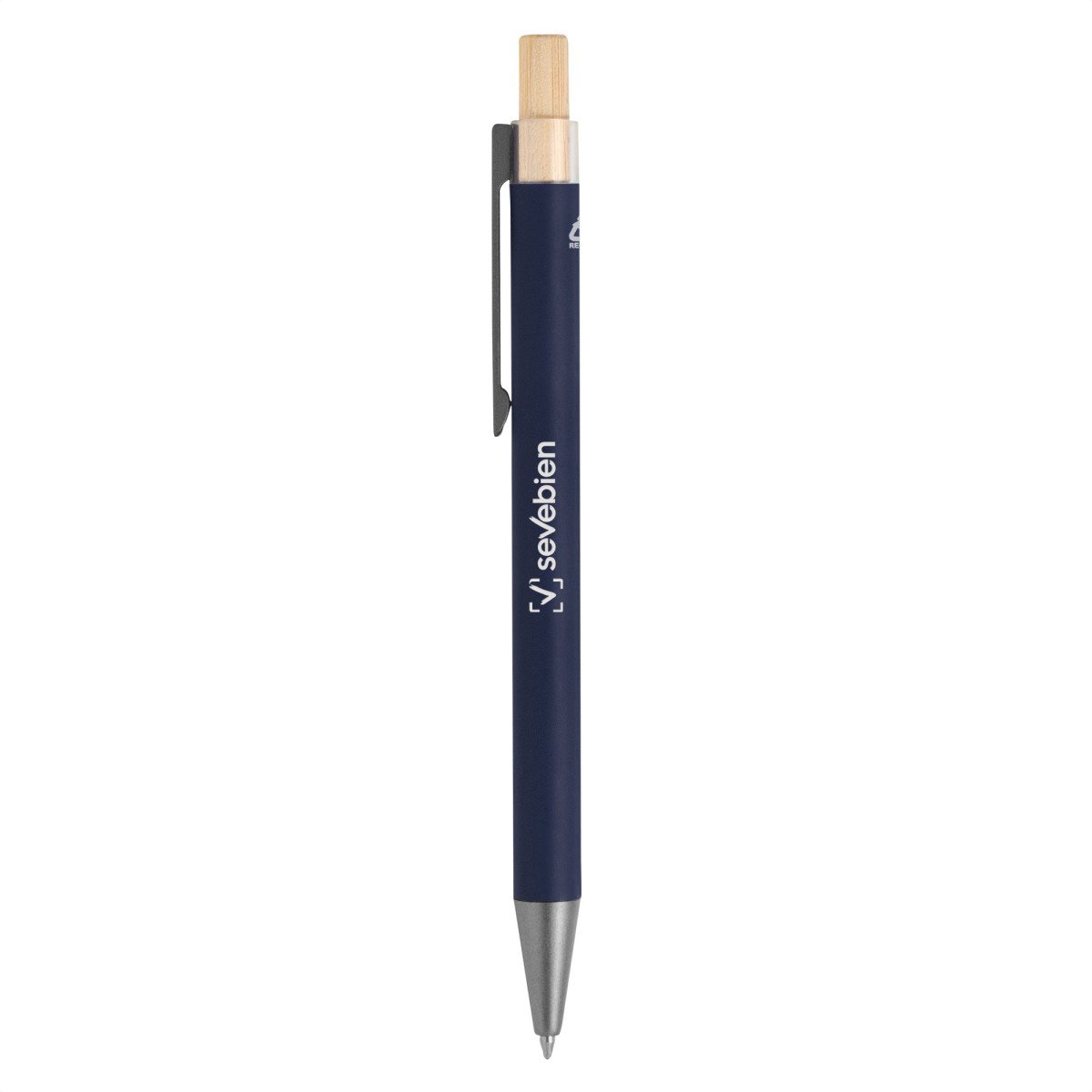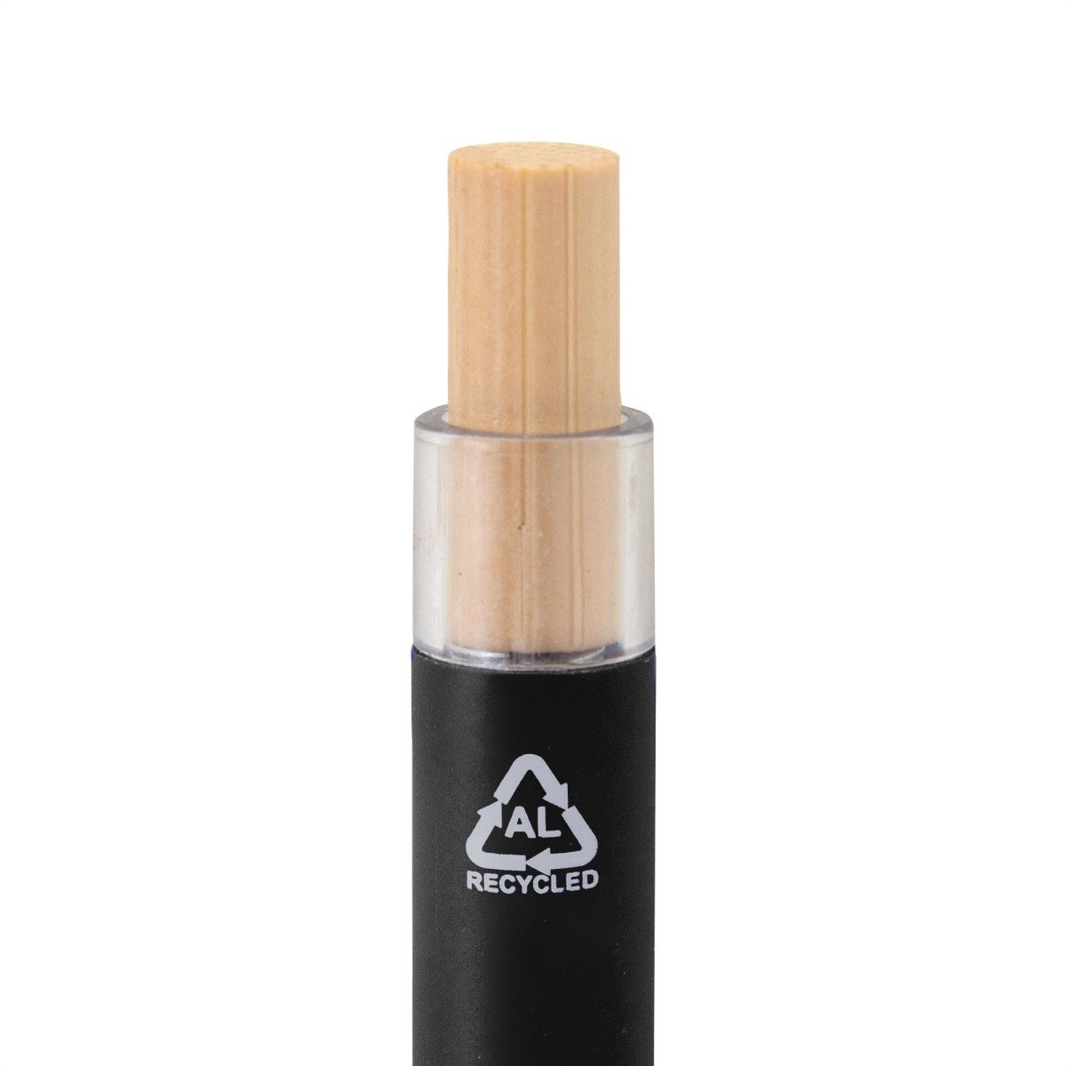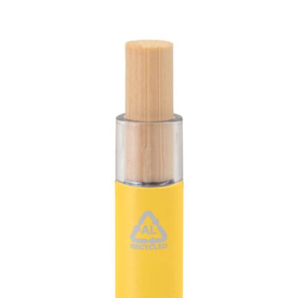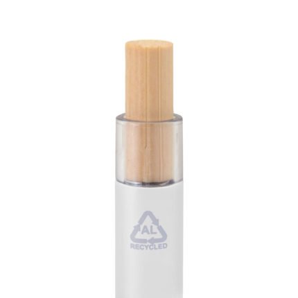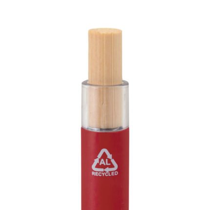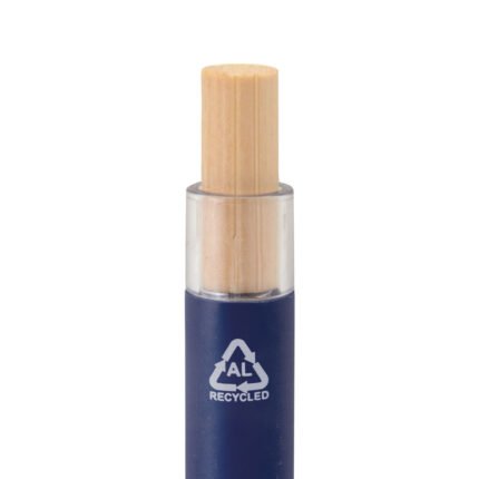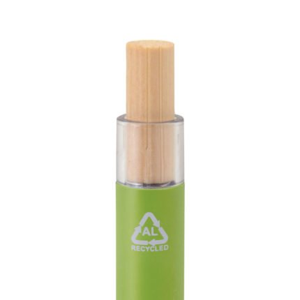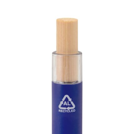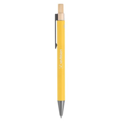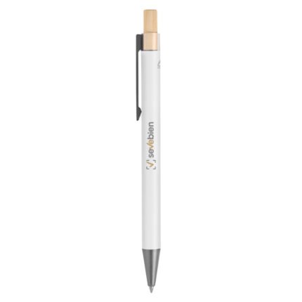 Elegancia y sostenibilidad. Bolígrafo retráctil. Cuerpo metálico en diferentes colores acabado mate. Clip metálico y puntera plástica color gris acabado mate. Pulsador de bambú.Medidas: 14 cm.