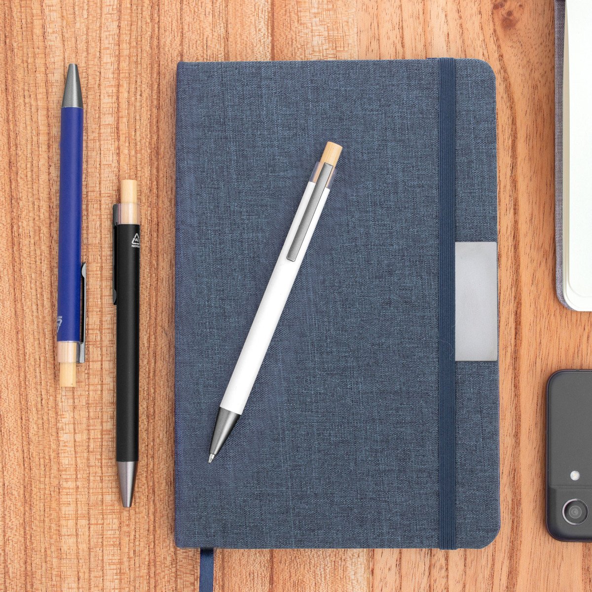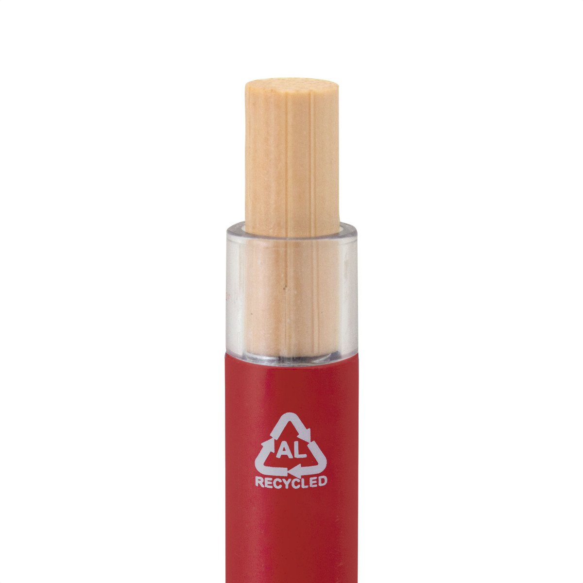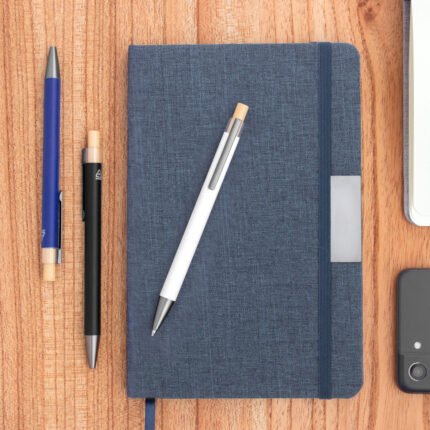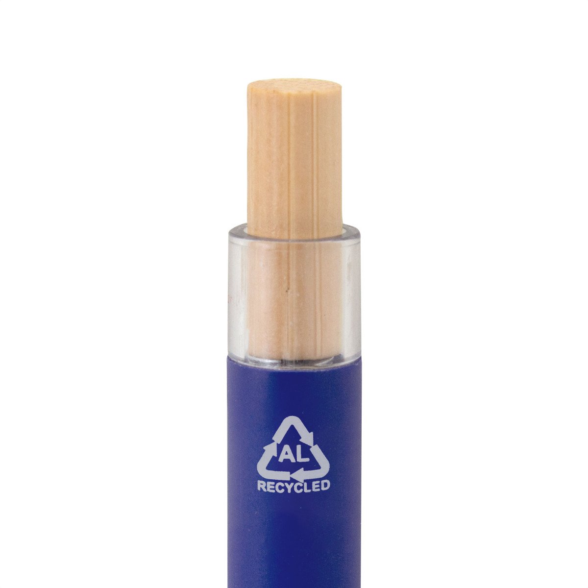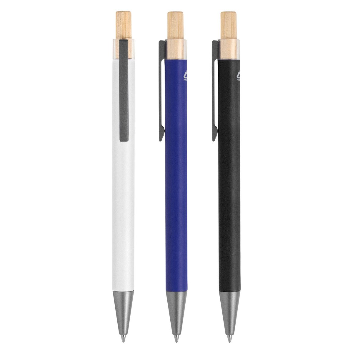 Elegancia y sostenibilidad. Bolígrafo retráctil. Cuerpo metálico en diferentes colores acabado mate. Clip metálico y puntera plástica color gris acabado mate. Pulsador de bambú.Medidas: 14 cm.