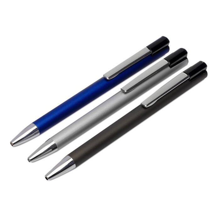 Bolígrafo metálico con cuerpo de color.