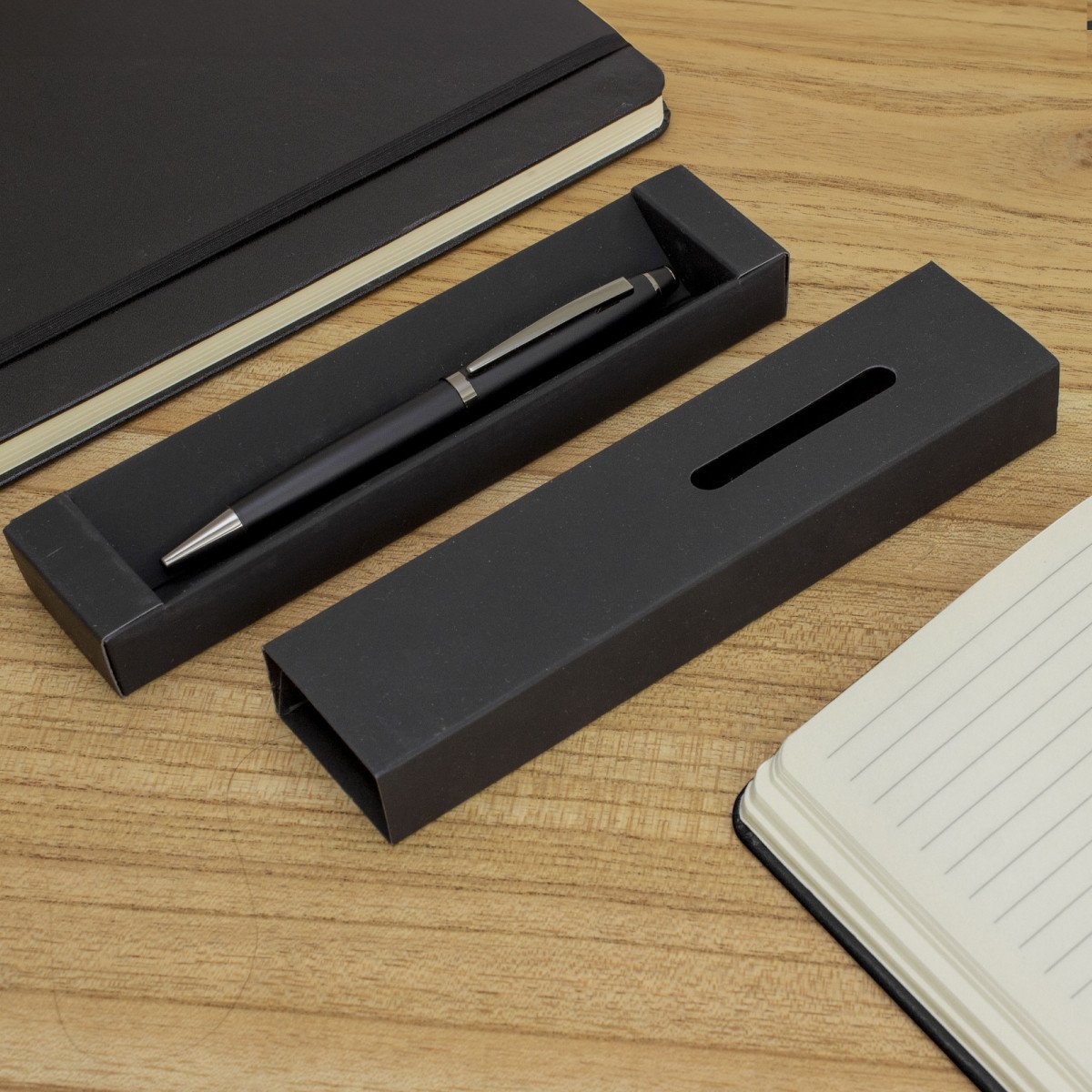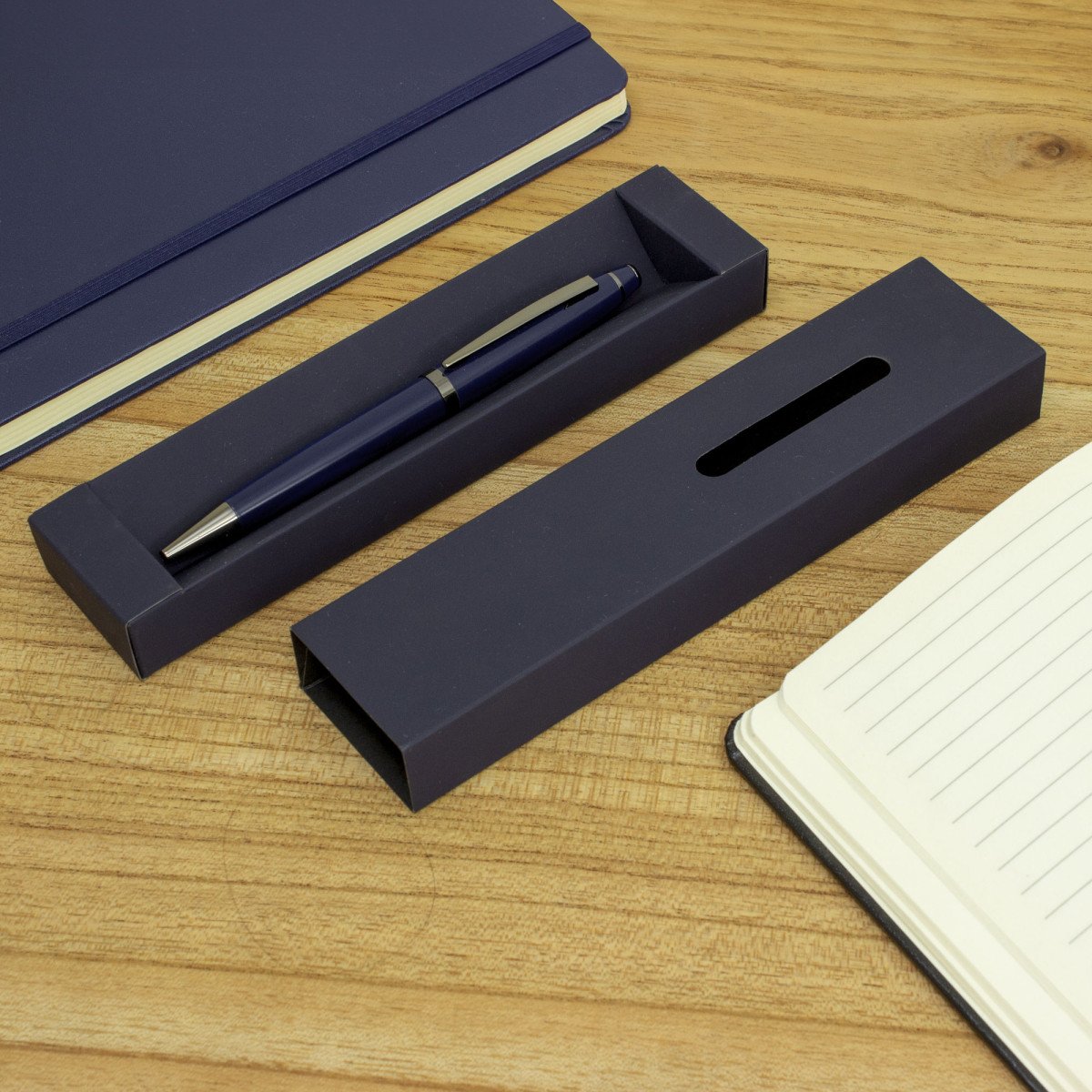 Presentación: en caja de regalo con ventana, del color del bolígrafo y acabado mate con textura suave al tacto.