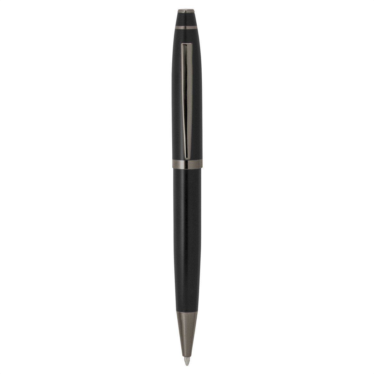 Cada detalle comunica distinción.Bolígrafo con apertura giratoria. Cuerpo de acero inoxidable de color con acabado mate. Clip, anillos y punteras metálicos color gun. Destape ocre claro. Recarga Parker Jumbo metálico. Medidas: 13,5 cm.