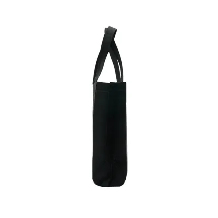 Bolsa reutilizable con fuelle lateral y base. Fabricada en friselina de 100 g/m2. Cuenta con manija tipo correa. Ideal para accesorios de tecnología o sets pequeños de regalo. Su diseño con base firme permite portar productos delicados o organizados.