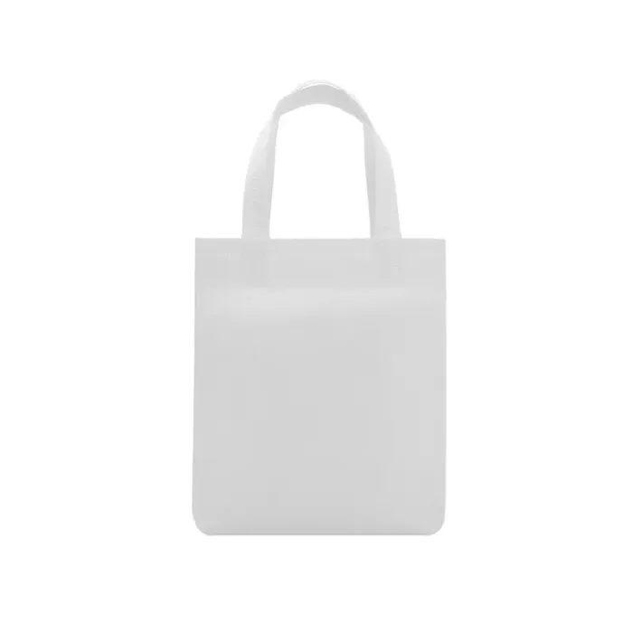 Bolsa reutilizable con fuelle lateral y base. Fabricada en friselina de 100 g/m2. Cuenta con manija tipo correa. Ideal para accesorios de tecnología o sets pequeños de regalo. Su diseño con base firme permite portar productos delicados o organizados.
