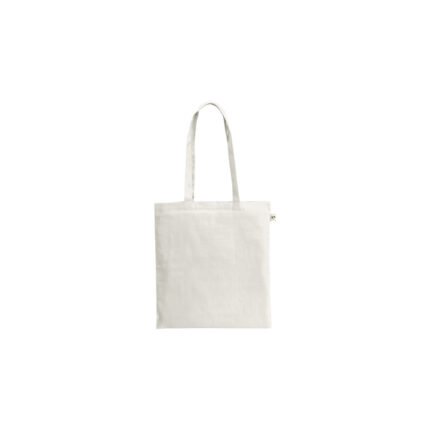 Bolsa confeccionada en algodón reciclado (70%) y poliéster reciclado rPET (30%), con un gramaje de 150 g/m². Incorpora asas largas de 65 cm que facilitan su uso cómodo en el día a día. El algodón reciclado utilizado conserva su color sólido natural, sin procesos de teñido ni blanqueo, lo que contribuye a un menor impacto ambiental. Para obtener el color uniforme se selecciona hilo reciclado del mismo tono, pudiendo presentar pequeñas variaciones e impurezas propias del material, lo que convierte a cada bolsa en un producto único. Gramaje: 150 g/m²