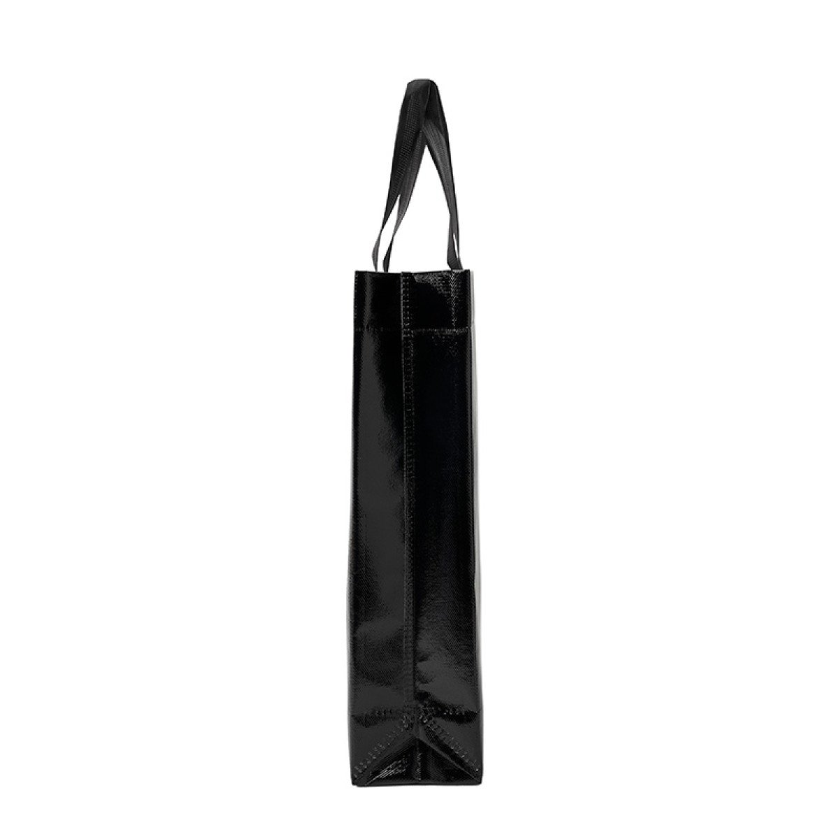 Bolsa reutilizable Shiny realizada en friselina de primera calidad con manijas tipo correa de 45 cm. Soporta hasta 15 kg de carga. Confeccionada 100% en polipropileno reciclable. Medidas: 40 cm alto x 38 cm ancho x 10 cm fuelle lateral e inferior. ReUseMe