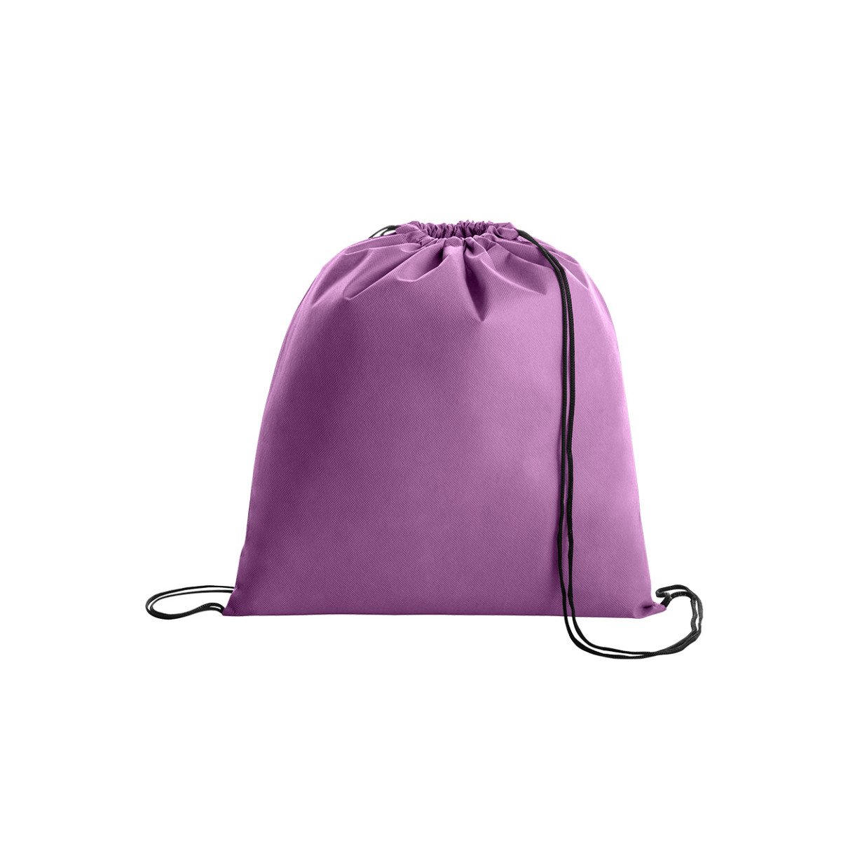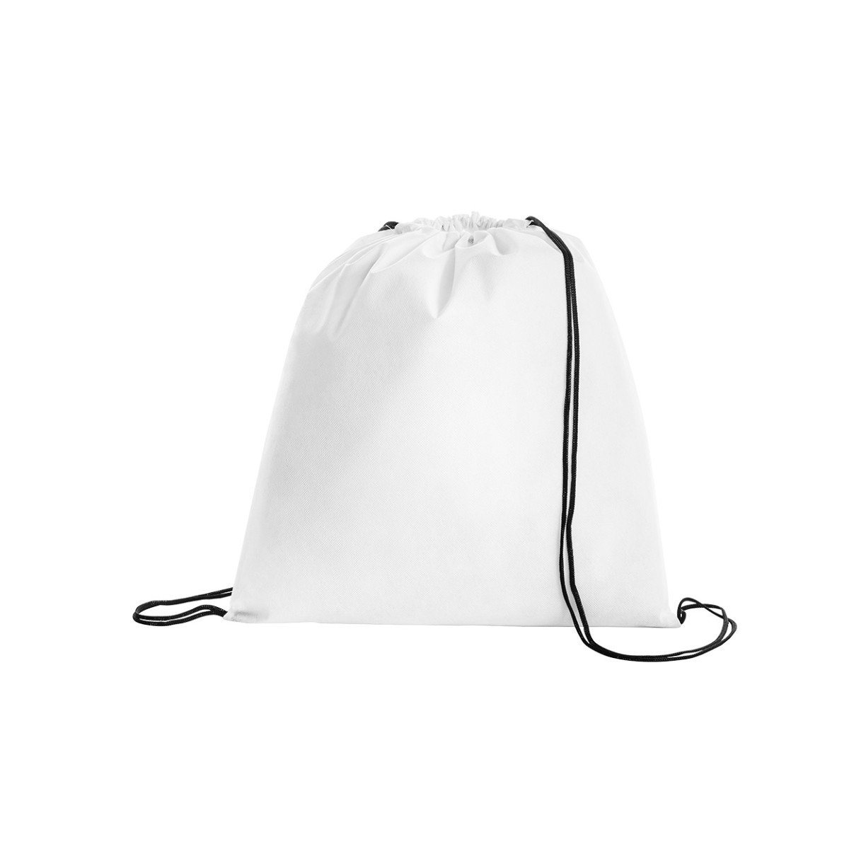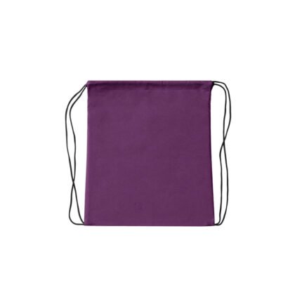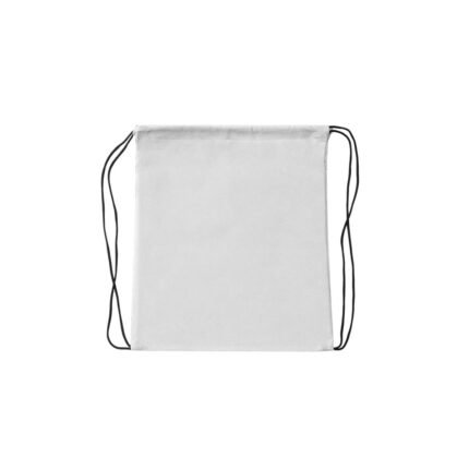 Bolsa de friselina (tela no tejida 80 g/m²) con correas de cordón negro para cierre. Ideal para eventos, deportes, ferias, entre otros.