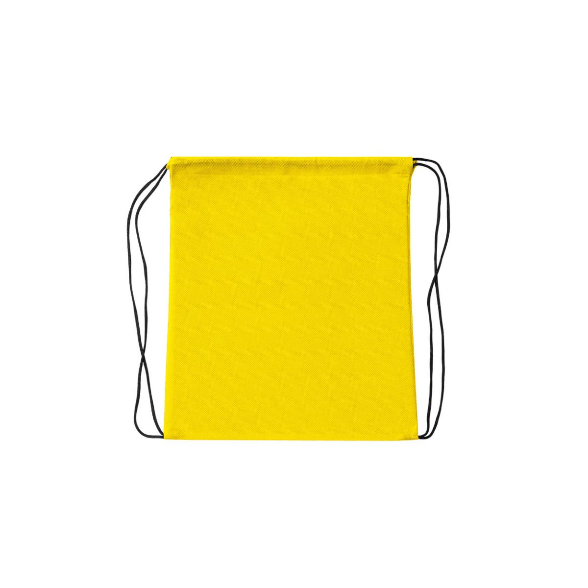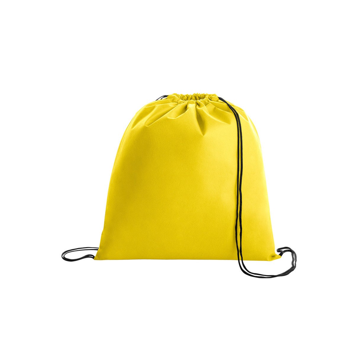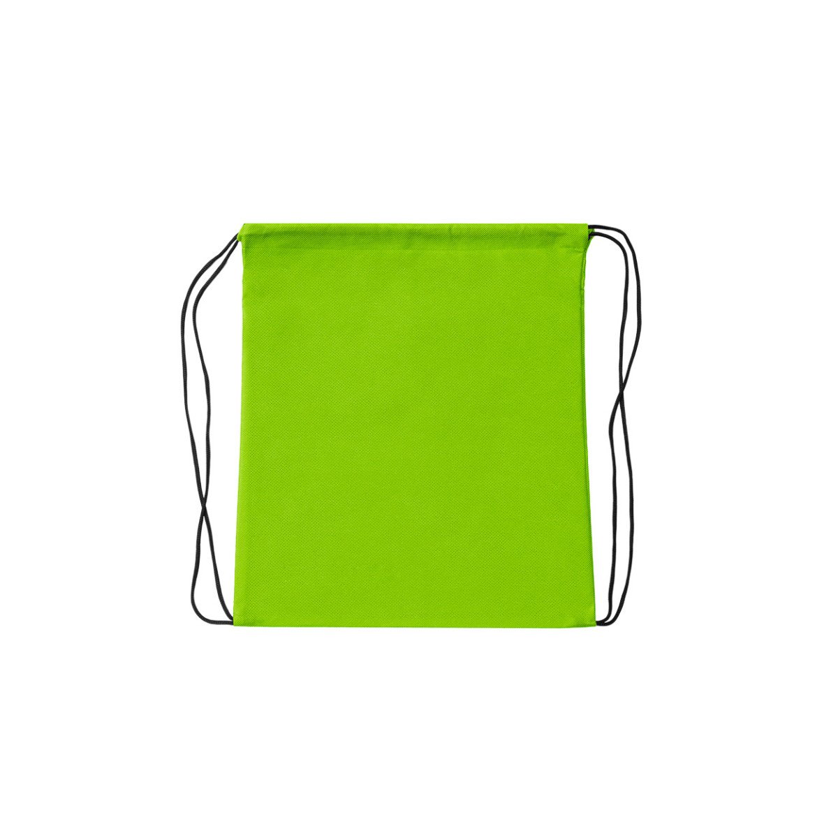 Bolsa de friselina (tela no tejida 80 g/m²) con correas de cordón negro para cierre. Ideal para eventos, deportes, ferias, entre otros.
