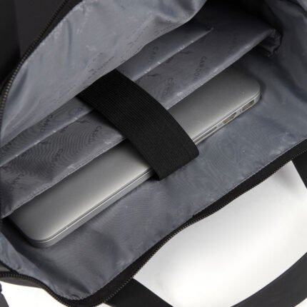 Bolso tote confeccionado en Polyester con cierres en tono y cabezal negro. Cuenta con un compartimiento principal amplio que posee un espacio porta notebook 14” y otro más pequeño para la agenda, sujetados con un elástico negro. Posee un bolsillo frontal y uno trasero, ambos con cierre. Manijas de goma y correas para espalda regulables, para que la utilices de la forma que más te guste. Ideal para llevarla al trabajo o facultad. Dimensiones: 39 x 34 x 13 cm (Alto x Longitud x Ancho). Capacidad: 13L. Cardon.