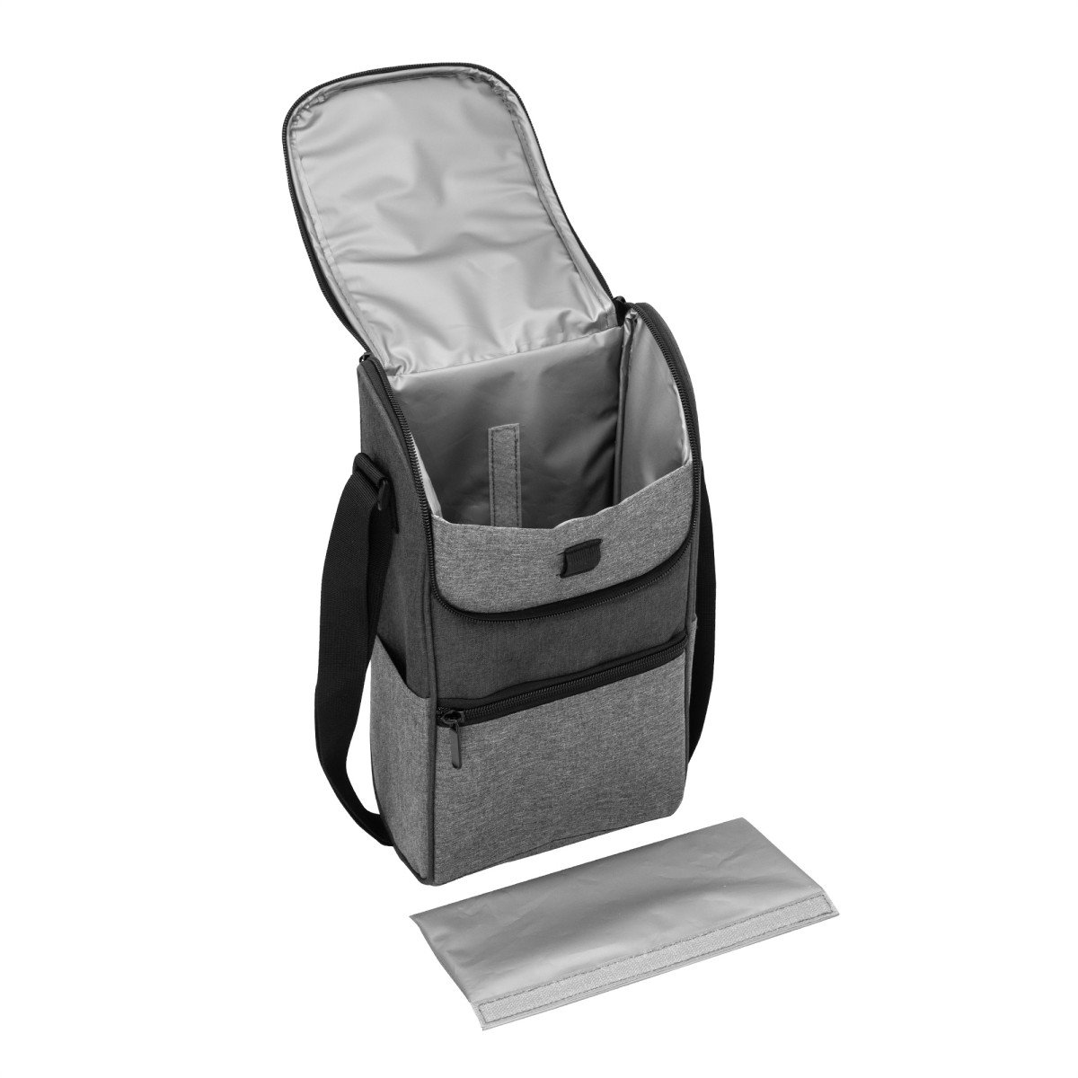 Todo el ritual, bien organizado.Bolso térmico matero / Cooler. Compartimento principal con cierre bidireccional y un separador interior extraible con velcro. Sujetador elástico para bombilla. Bolsillo frontal con cierre horizontal. Dos bolsillos laterales de tela para accesorios. Tela resistente al desgarro y a la humedad, de secado rápido. Interior forrado en PEVA. Correa ajustable y tiradores de cierre metálicos color negro.Medidas: 34 x 19 x 12 cm.