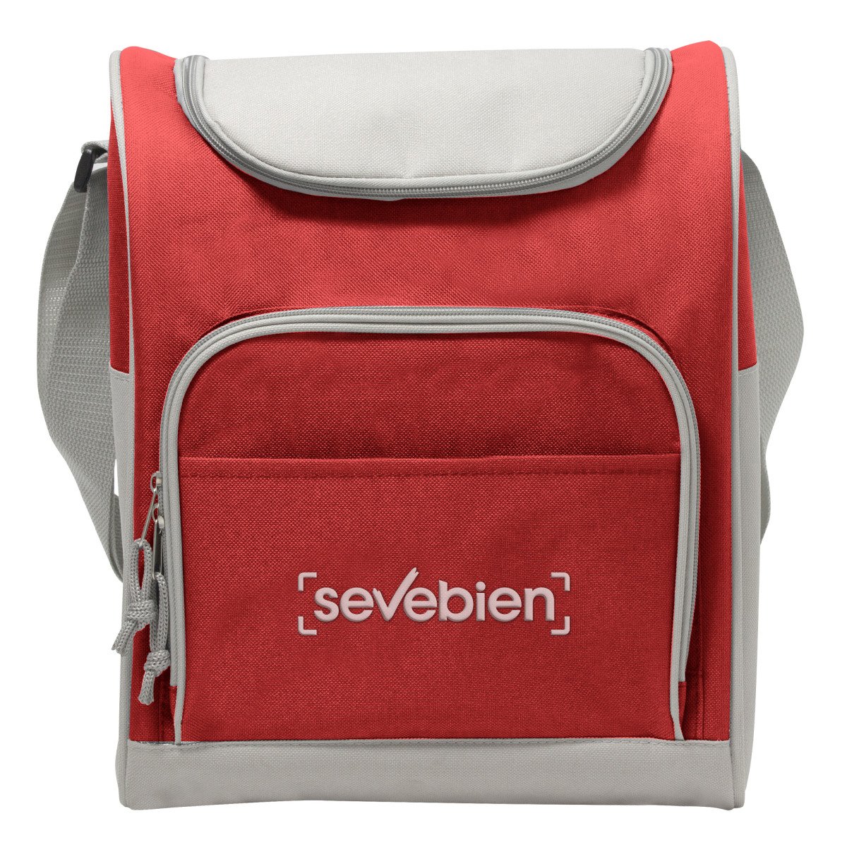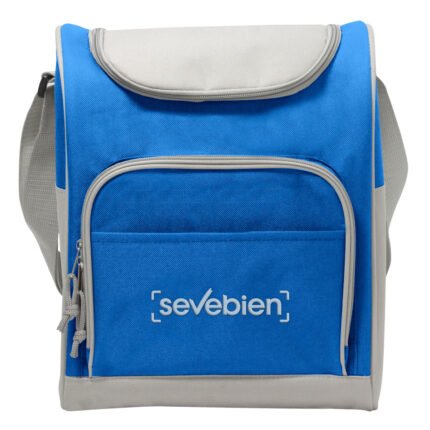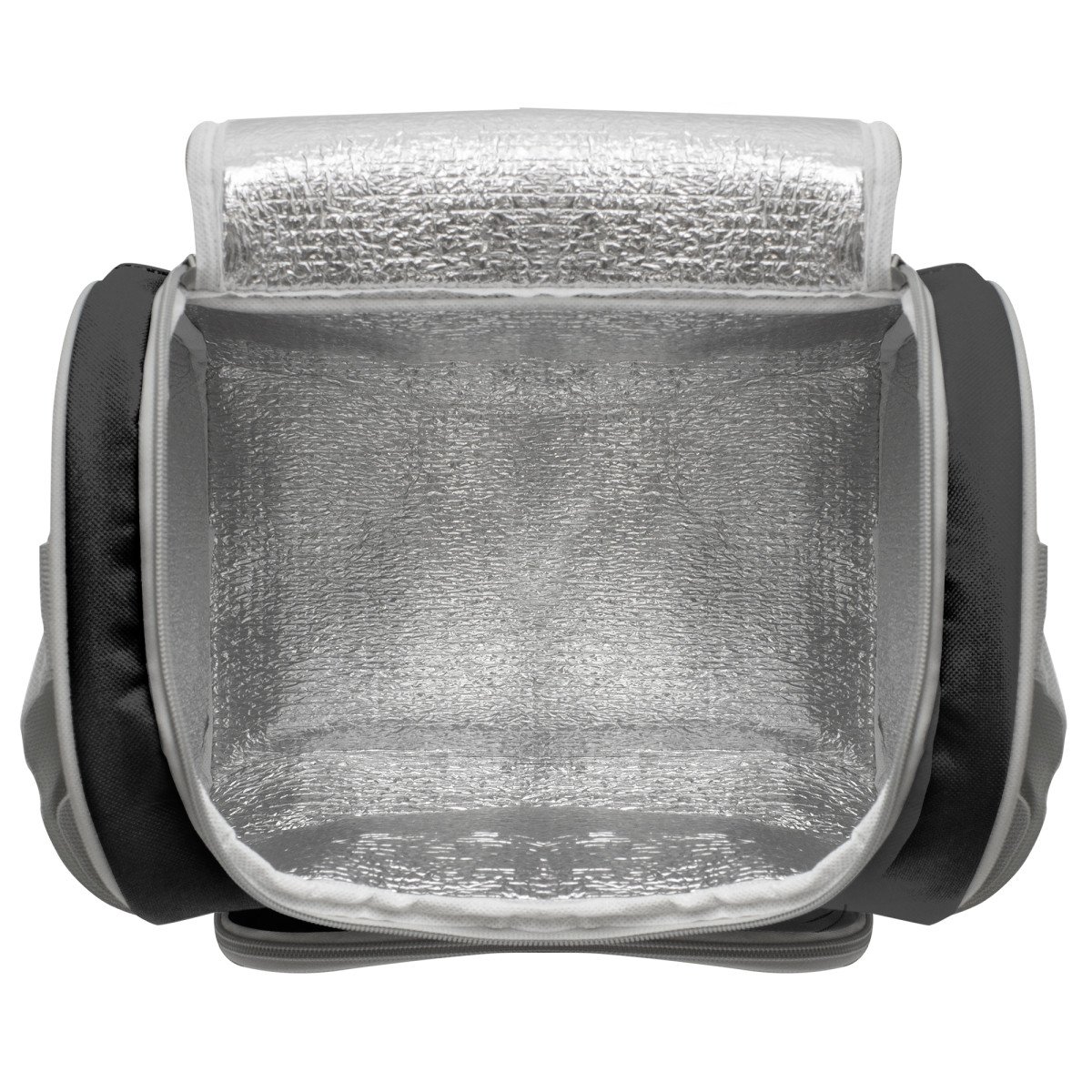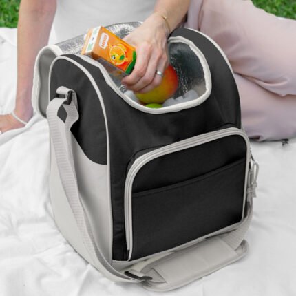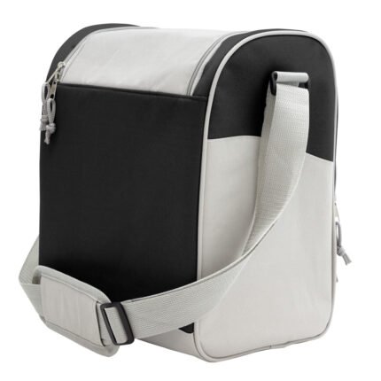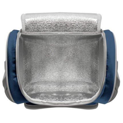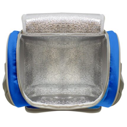 34 x 25 x 19 cm. Capacidad 16l. Polyester 600D. Bolso térmico. Interior totalmente recubierto de aluminio. Bolsillo frontal, correa extensible y cierres metálicos con tira cierres de cordón.