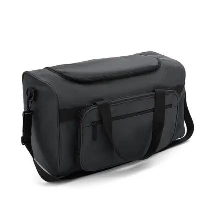 Bolso utilitario confeccionado en satén color negro. Hecho con materiales resistentes y biodegradables, cuenta con amplio compartimento principal, costuras reforzadas y diseño funcional. Es ideal para transportar herramientas, ropa o equipos en entornos laborales, deportivos o de viaje.
