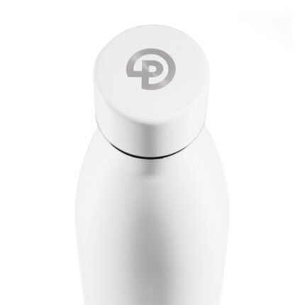 Botella reutilizable de doble pared de acero inoxidable, esmaltado en su exterior con Powder Coating. Es ideal para mantener la temperatura de la bebida: mantiene 4 horas la bebida caliente y 8 horas la bebida fría. Su tapa está confeccionada en PP, acero inoxidable y silicona para evitar derrames de líquido. Capacidad: 500 ml.