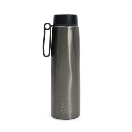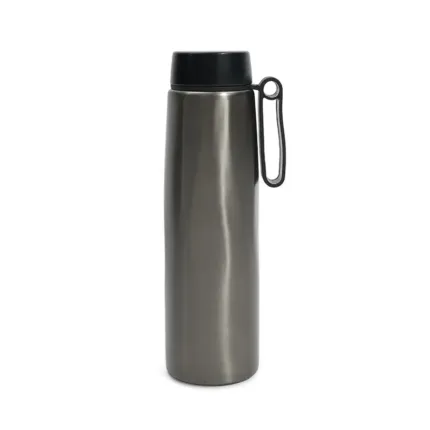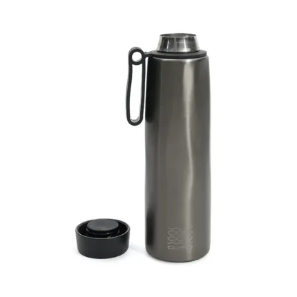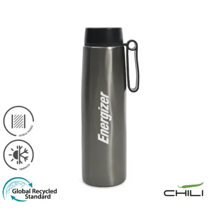 Botella térmica con diseño ergonómico. Hecha de acero inoxidable 304 reciclado con doble pared al vacío que garantiza durabilidad y conservación térmica. Cuenta con una práctica asa giratoria que facilita su transporte y uso diario. Mantiene las bebidas calientes hasta 12 horas y frías hasta 24 horas. Es ideal para quienes llevan un estilo de vida activo, estudiantes, viajeros o profesionales que buscan una opción ecológica y elegante para mantenerse hidratados durante todo el día.