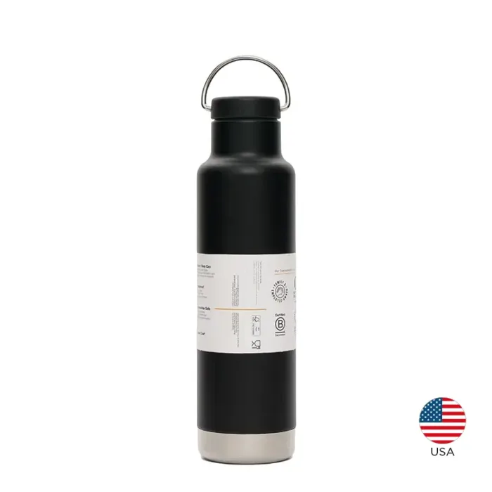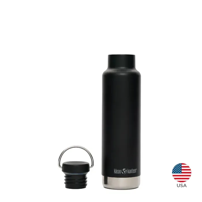 Botella térmica de 592 ml fabricada en doble pared de acero inoxidable, manteniendo las bebidas calientes durante 24 horas y frías durante 63 horas. Exterior en polvo Klean Coat, resistente a las astillas, es duradero y seguro para las personas y el planeta.